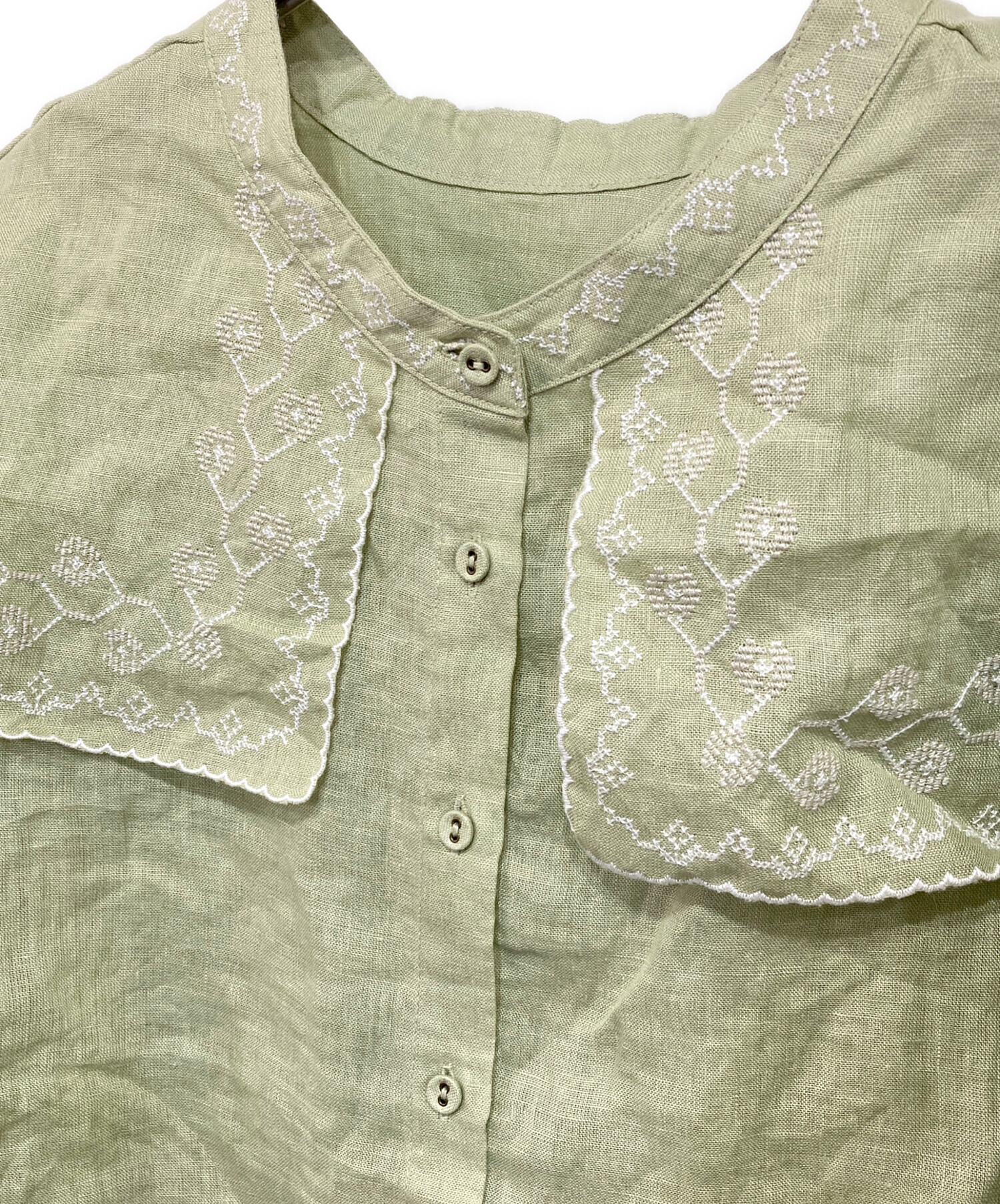 | アイテム名 | リネンハンカチ刺繍前後2WAYブラウス |