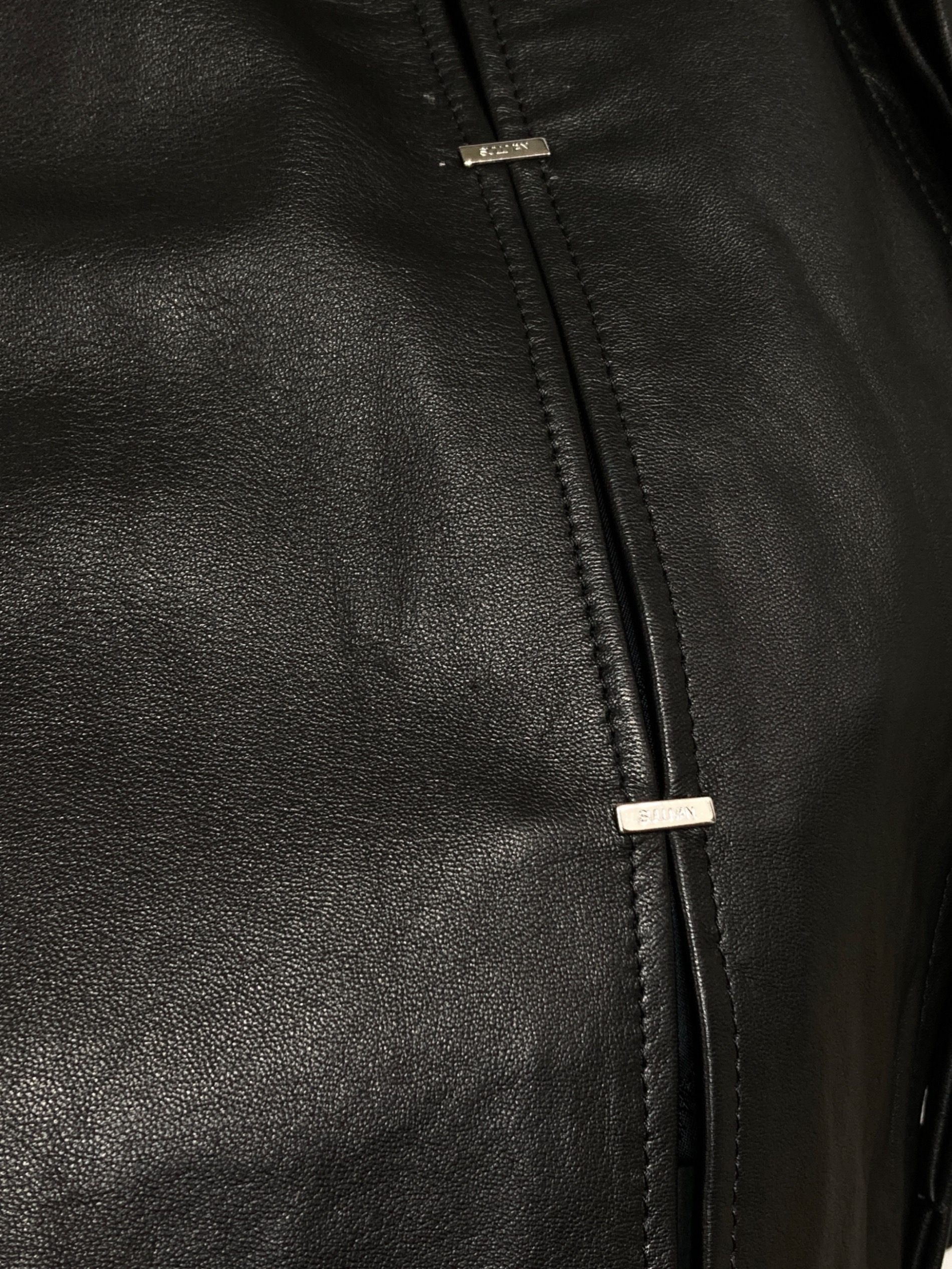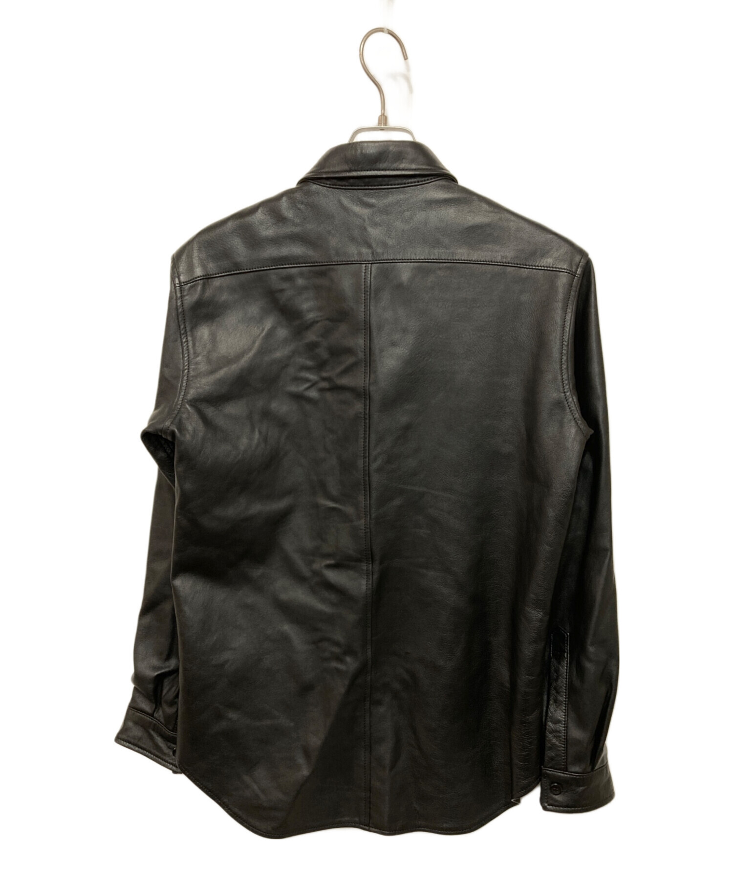 • JOHN LAWRENCE SULLIVAN(ジョン ローレンス サリバン)JOHN LAWRENCE SULLIVAN (ジョン ローレンス サリバン) Leather Metal Line Shirt ブラック サイズ:46の古着・服飾アイテム 裏面ヨゴレ