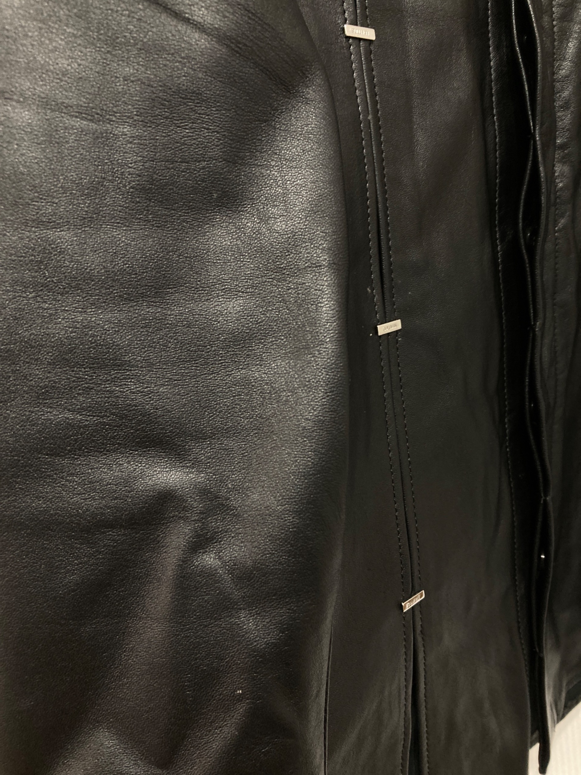 • JOHN LAWRENCE SULLIVAN(ジョン ローレンス サリバン)JOHN LAWRENCE SULLIVAN (ジョン ローレンス サリバン) Leather Metal Line Shirt ブラック サイズ:46の古着・服飾アイテム 袖小傷
