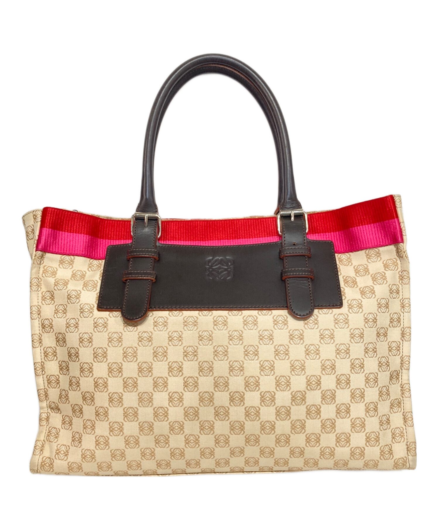 • LOEWE(ロエベ)LOEWE (ロエベ) アナグラムキャンバストートバッグ レッド×ベージュの古着・服飾アイテム