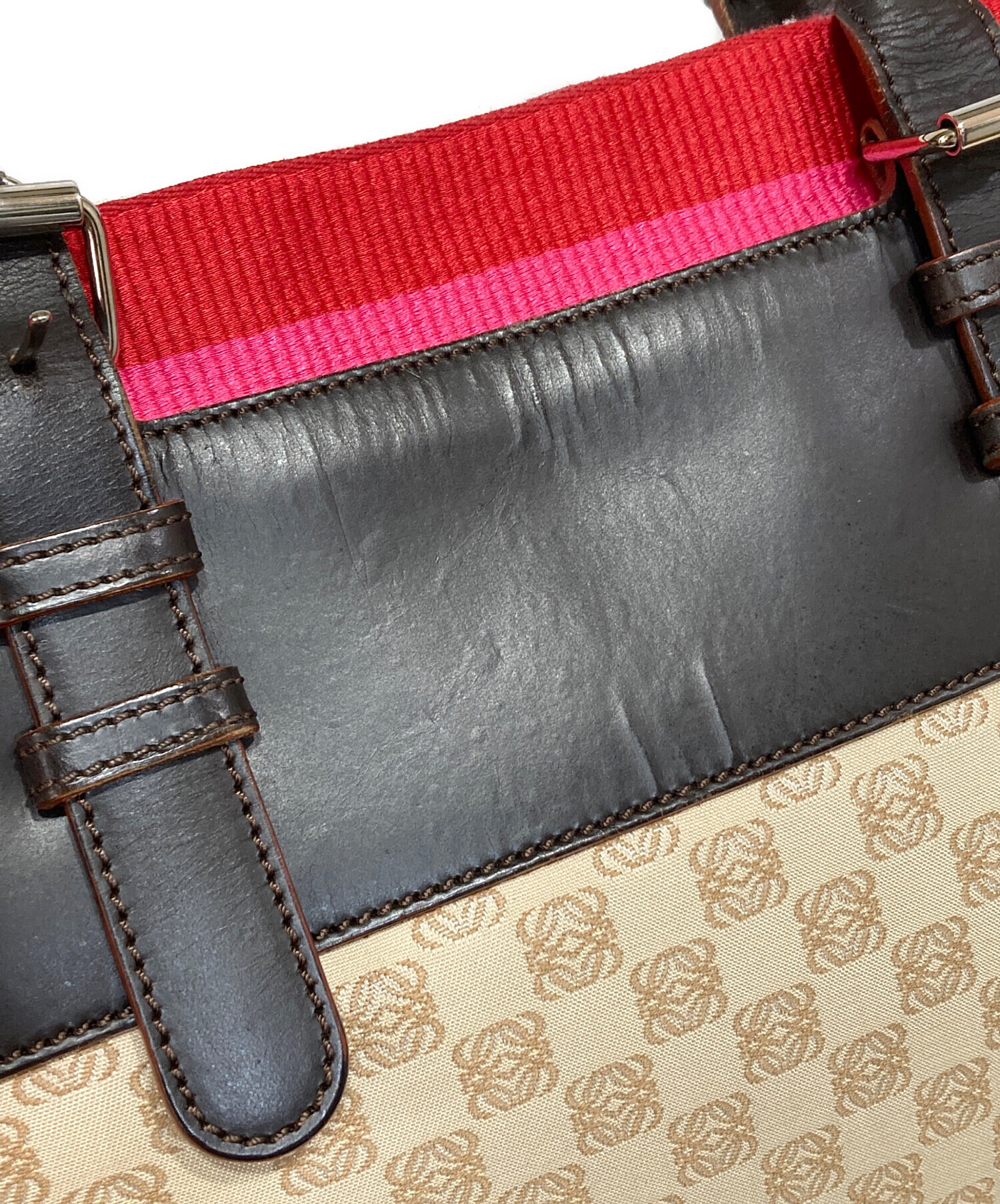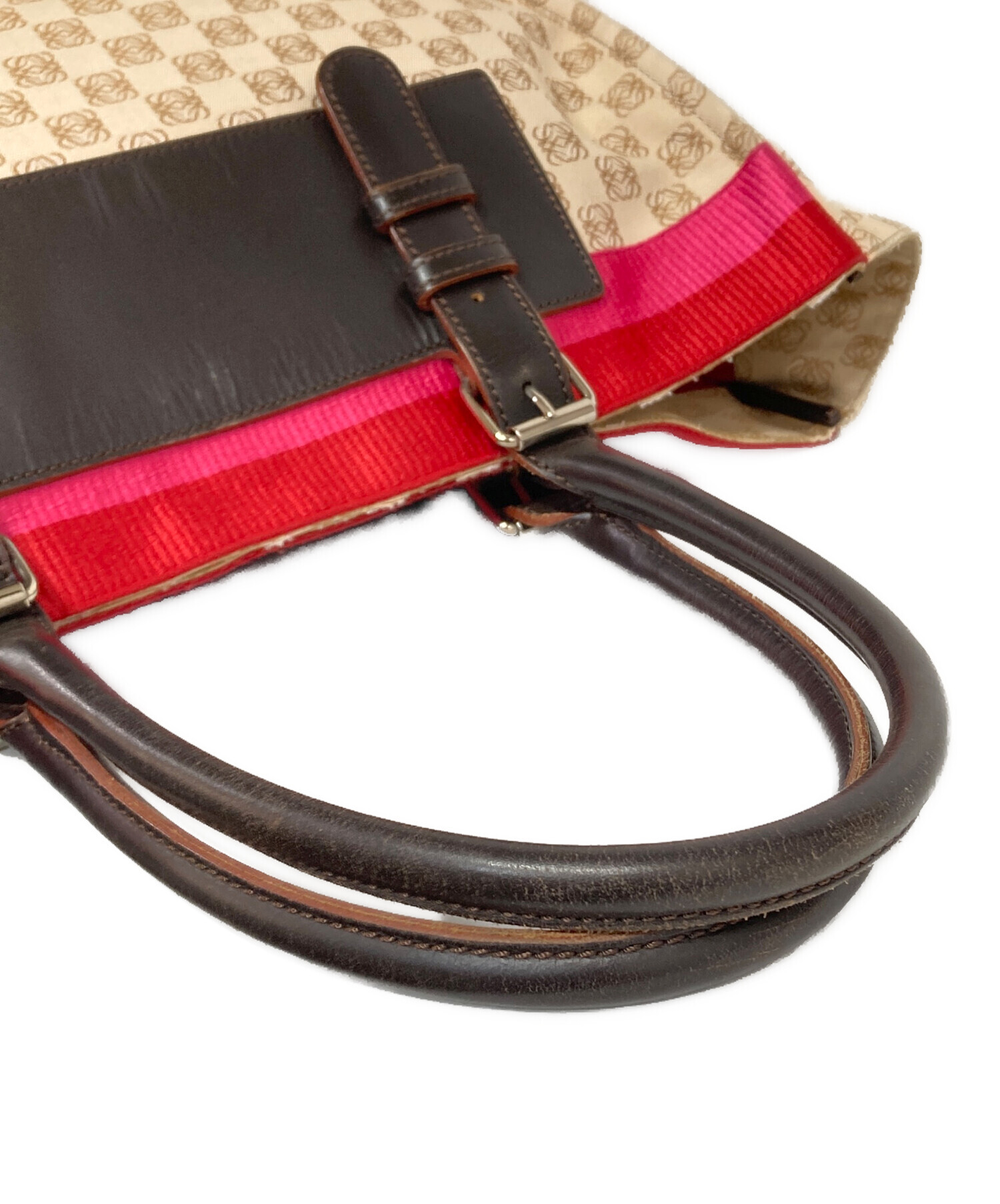 • LOEWE(ロエベ)LOEWE (ロエベ) アナグラムキャンバストートバッグ レッド×ベージュの古着・服飾アイテム ハンドルスレ、キズ