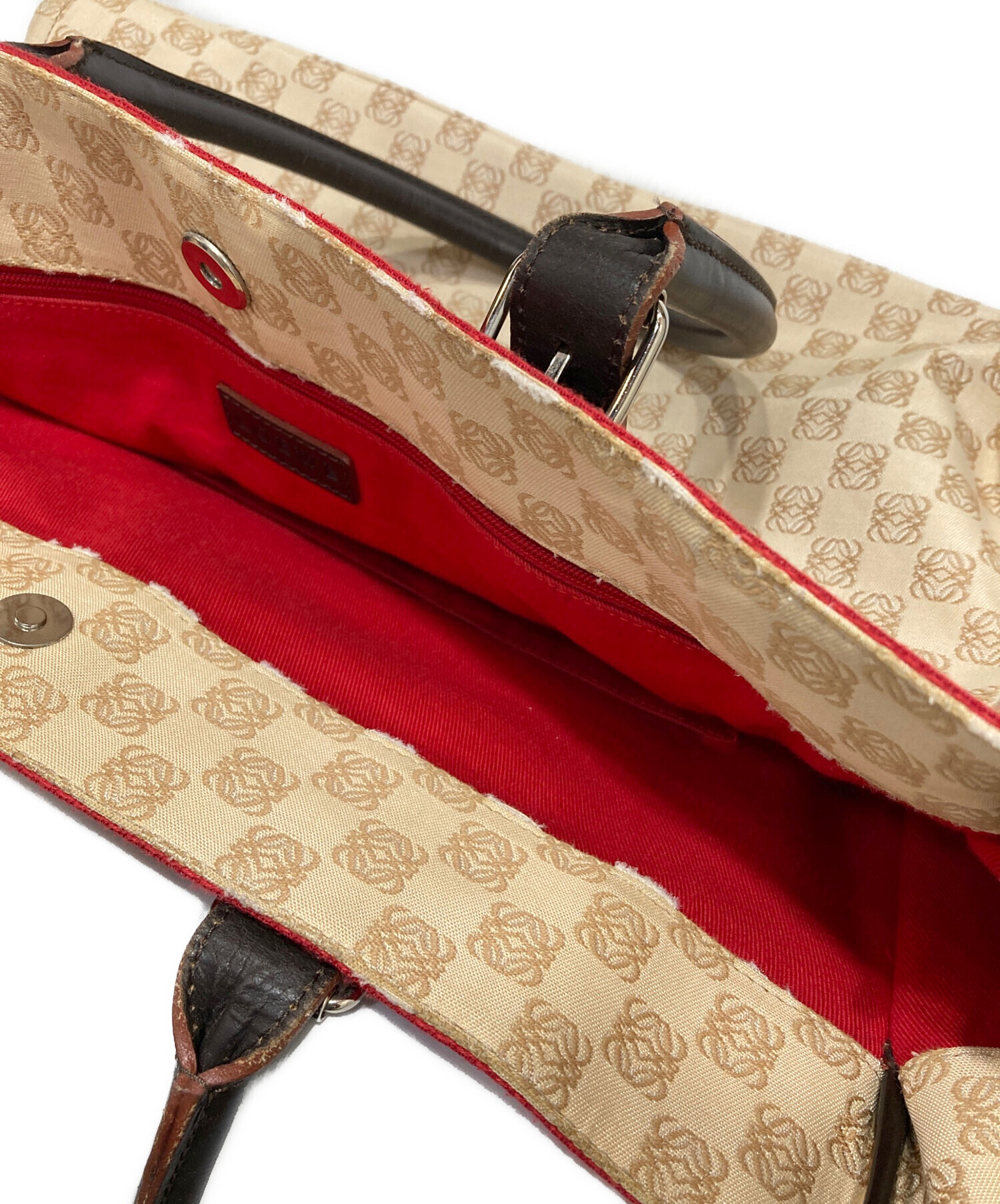 • LOEWE(ロエベ)LOEWE (ロエベ) アナグラムキャンバストートバッグ レッド×ベージュの古着・服飾アイテム 内部ヨゴレ