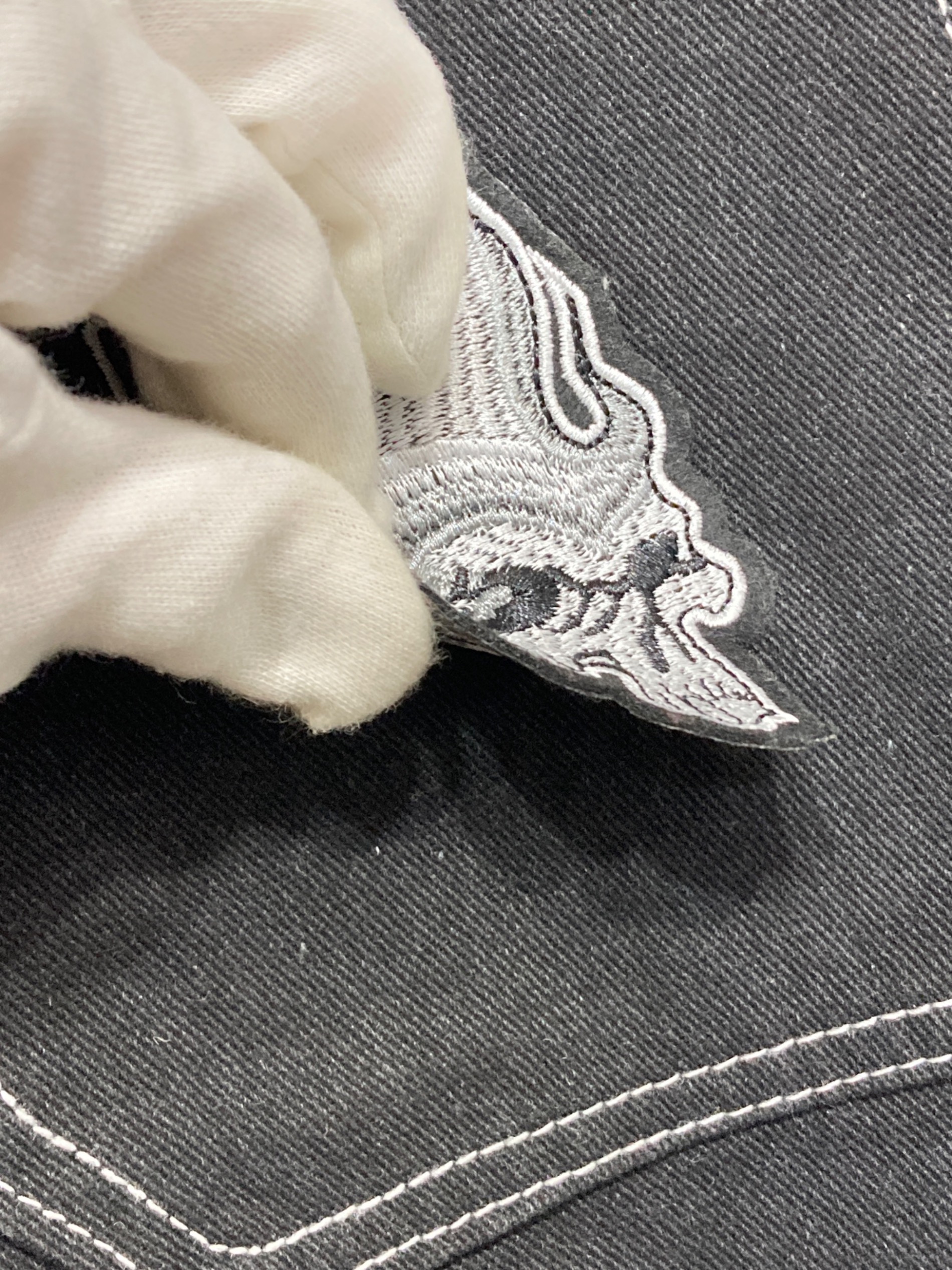 ワッペン付ブラックデニム