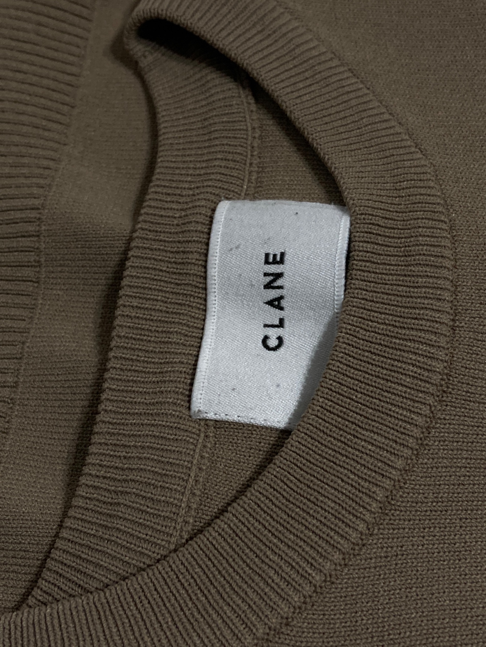 • CLANE(クラネ)CLANE (クラネ) BASIC COMPACT KNIT TOPS/ベーシック コンパクト ニット トップス ブラウン サイズ:1の古着・服飾アイテム タグ毛羽立ち