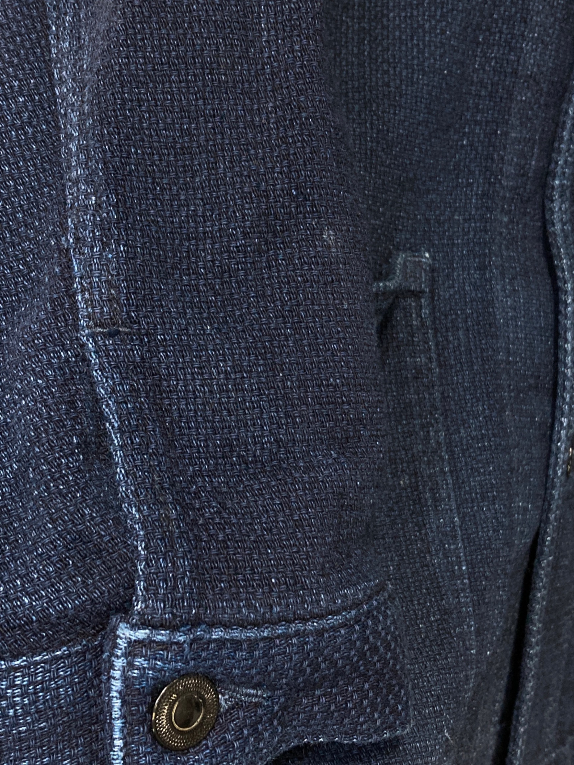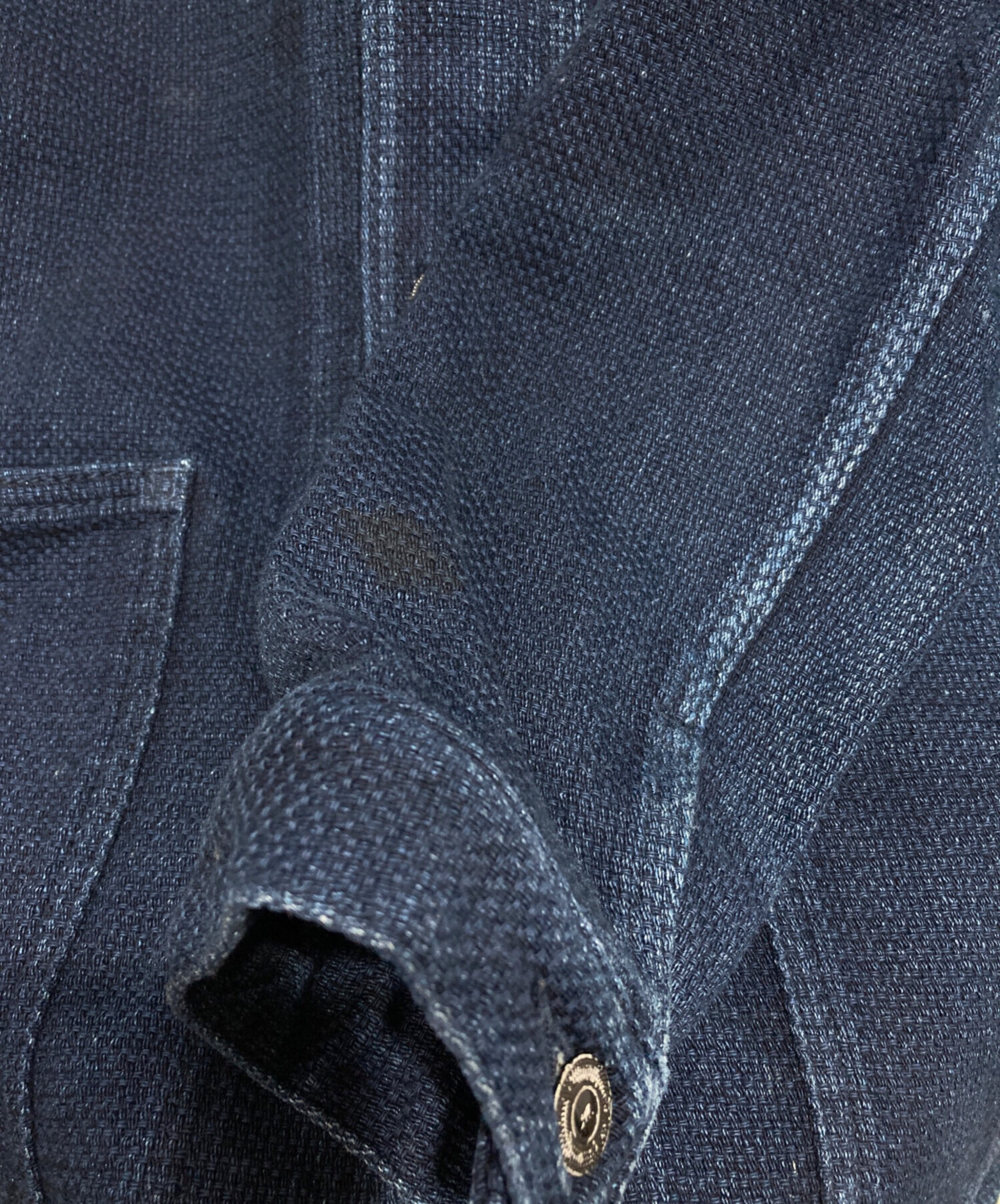 • MOMOTARO JEANS(桃太郎ジーンズ)MOMOTARO JEANS (桃太郎ジーンズ) DOBBY US NAVY COVERALL インディゴ サイズ:42の古着・服飾アイテム アタリ、ヨゴレ