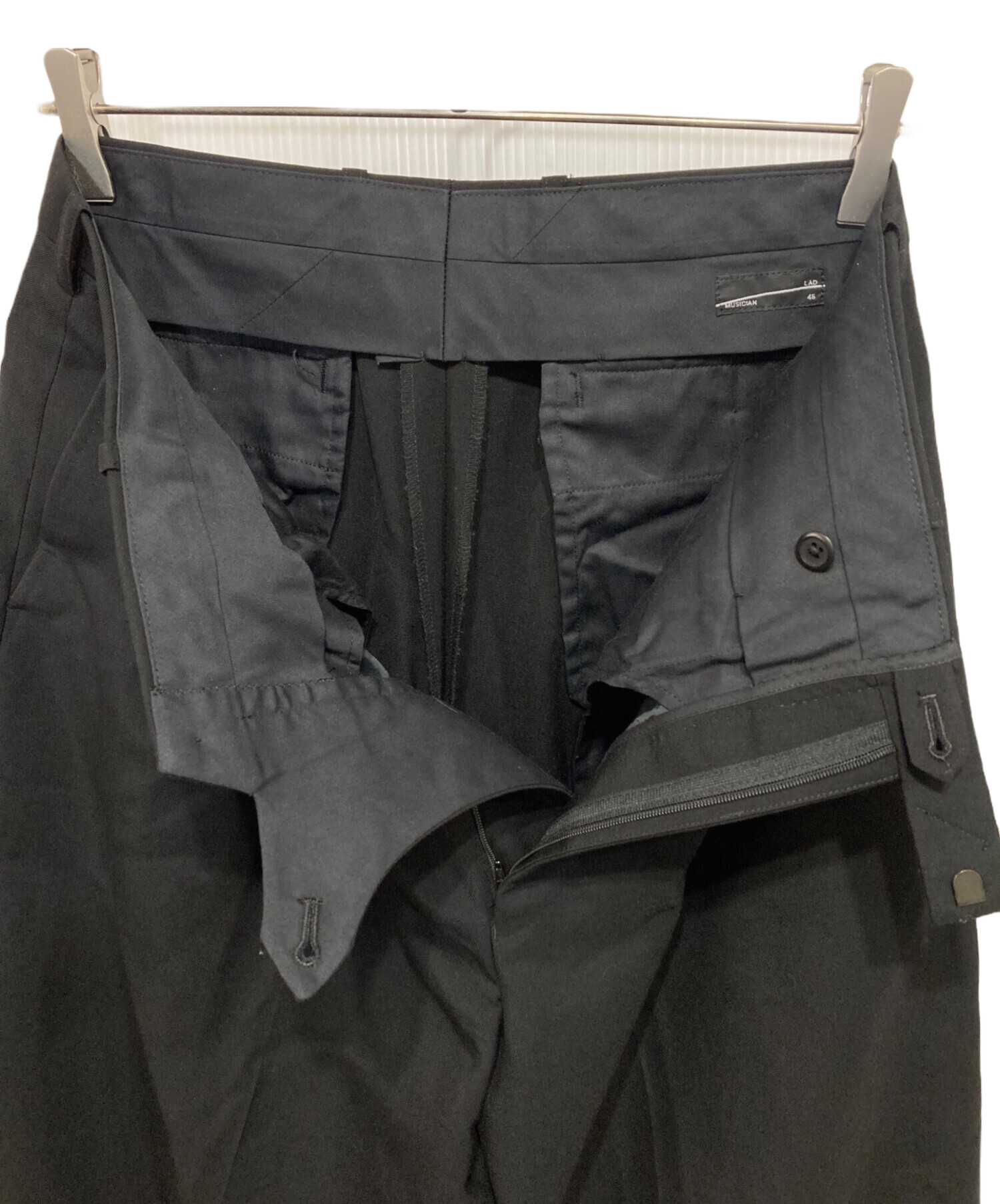 • LAD MUSICIAN(ラッドミュージシャン)LAD MUSICIAN (ラッドミュージシャン) 21AW WOOL GABARDINE 2タック ワイドパンツ ブラック サイズ:46の古着・服飾アイテム 薄ヨゴレ有