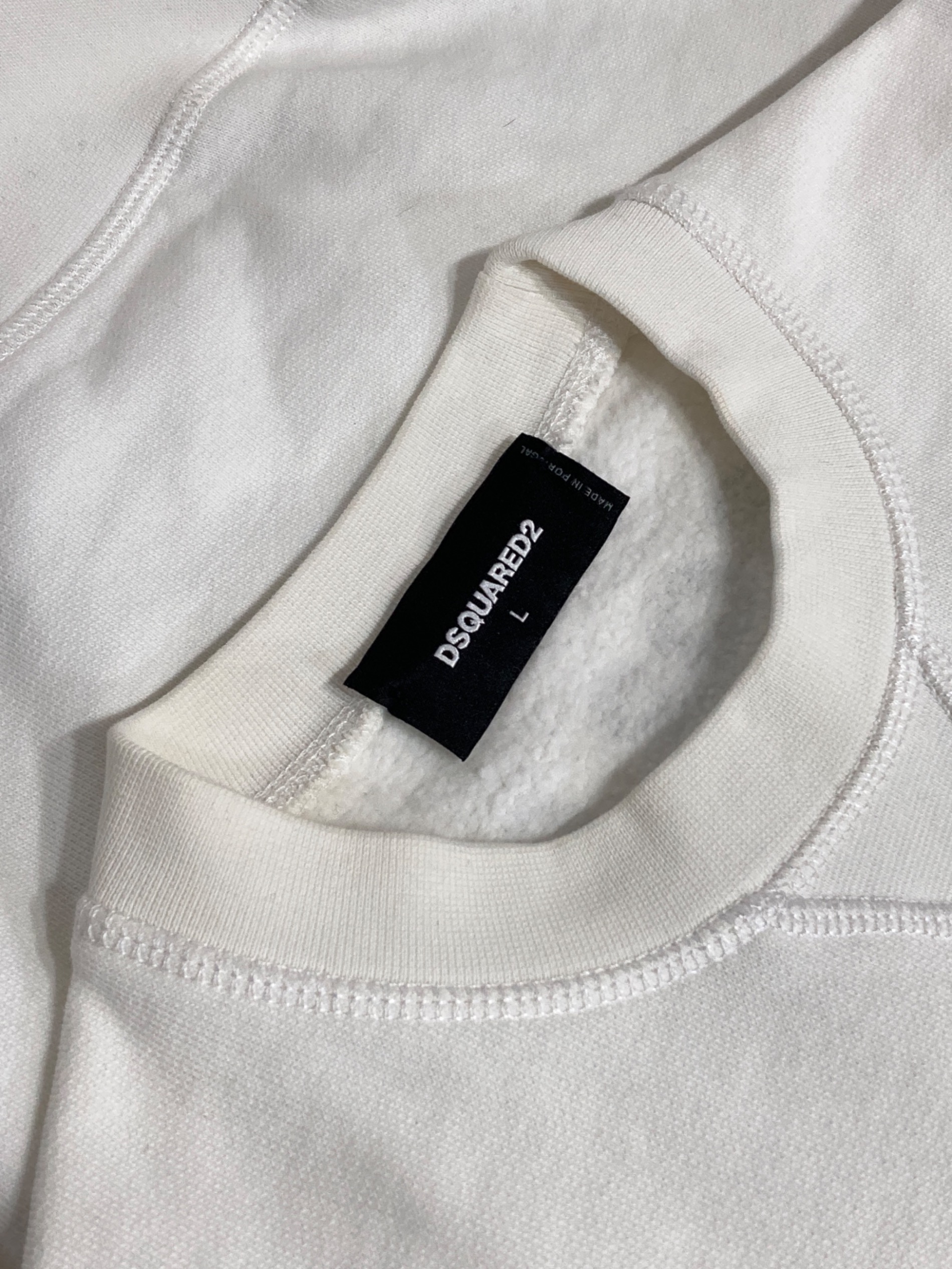 • DSQUARED2(ディースクエアード)DSQUARED2 (ディースクエアード) Two Sides Sweatshirt ホワイト サイズ:Lの古着・服飾アイテム 襟裏部分ヨゴレ
