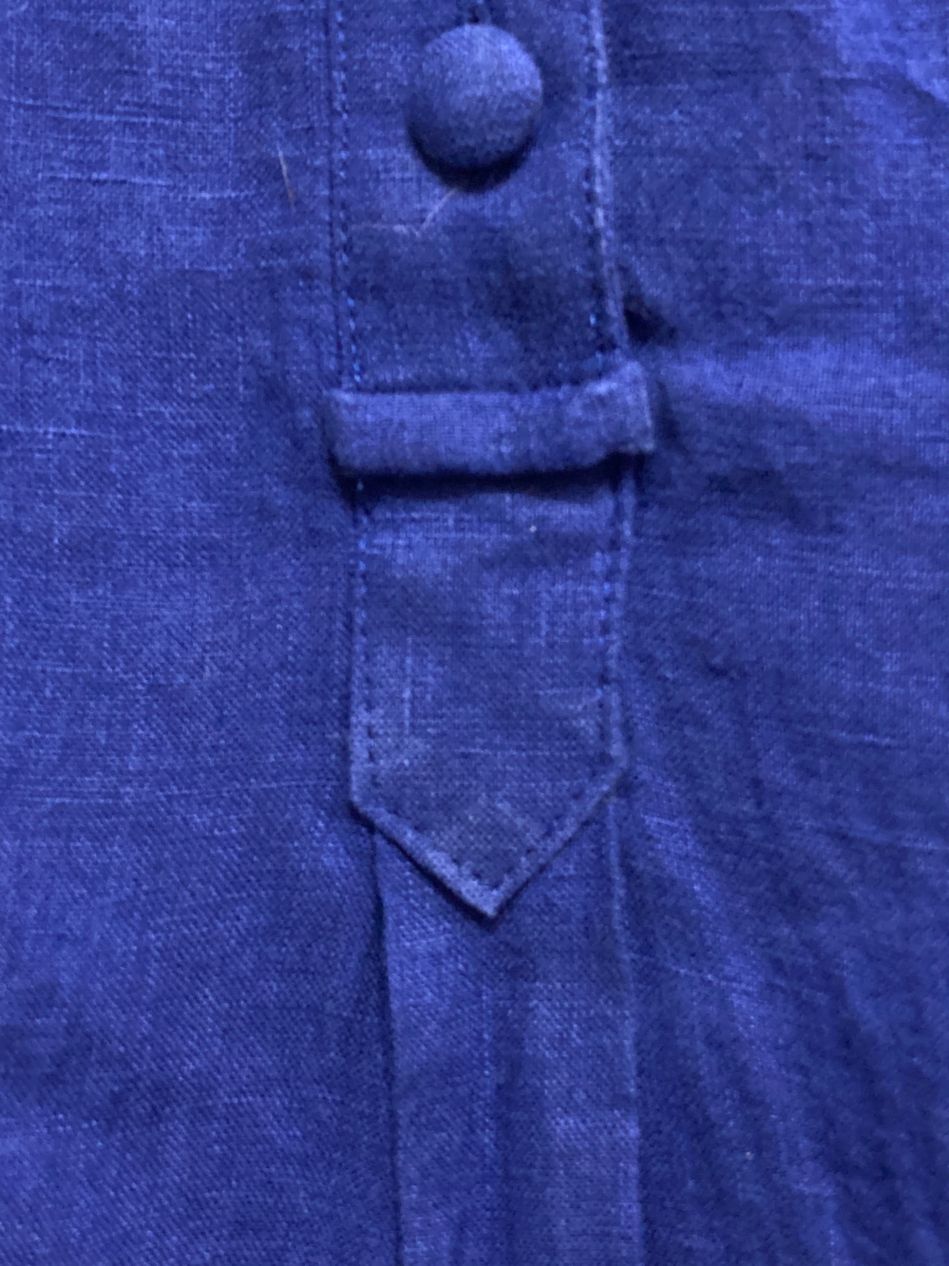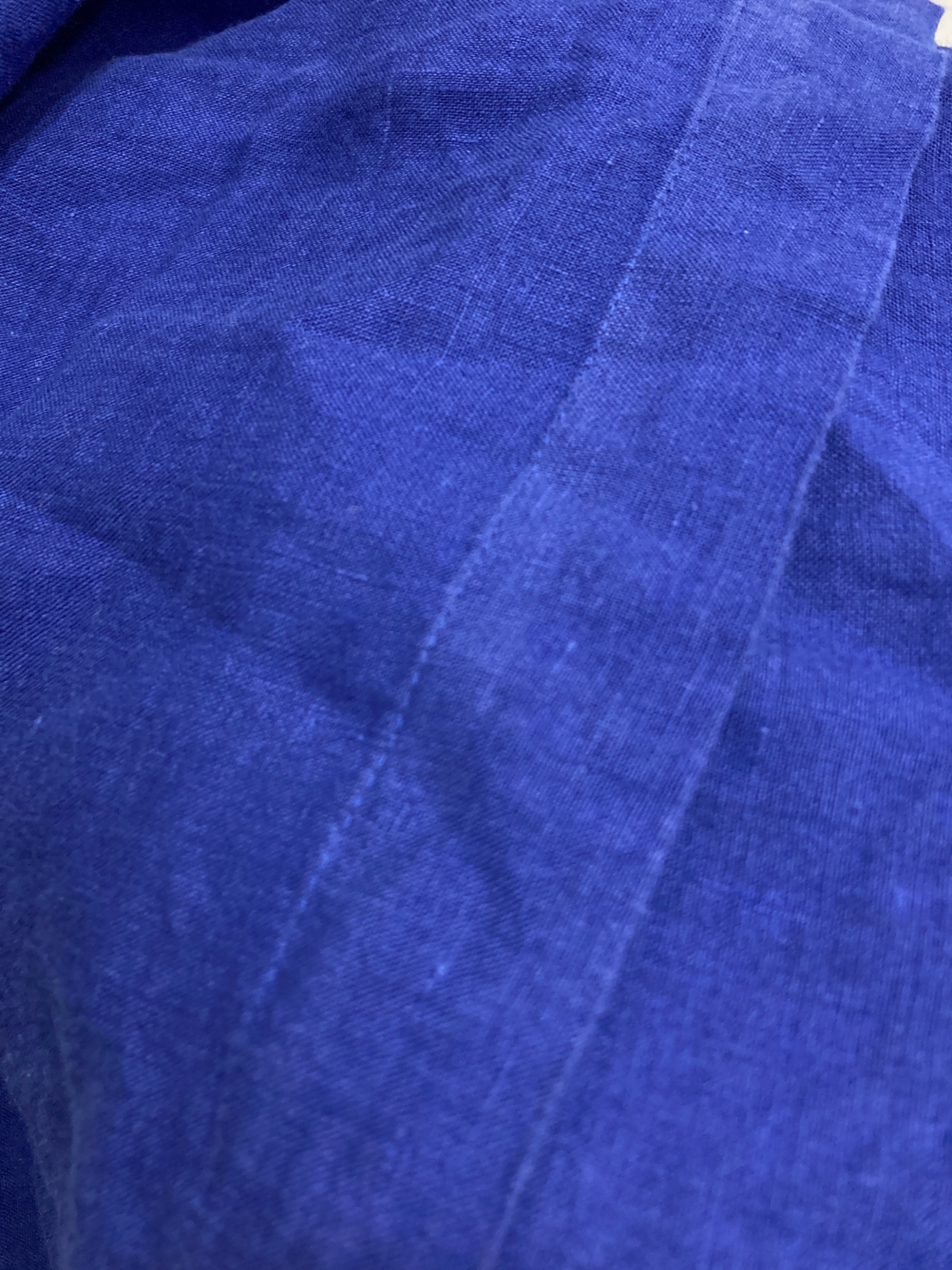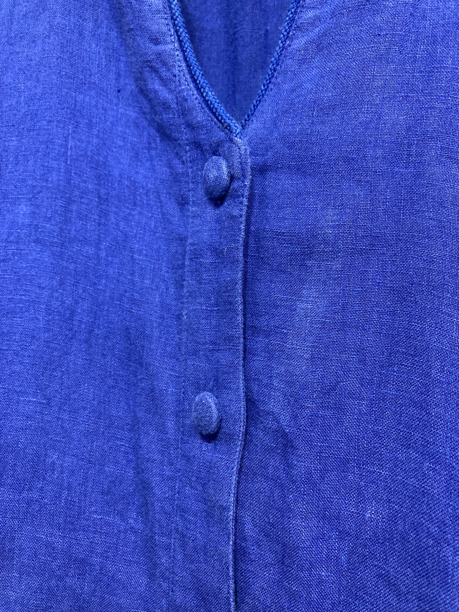• Pale Jute(ペールジュート)Pale Jute (ペールジュート) パイピングリネンワンピース ブルー サイズ:Fの古着・服飾アイテム 背面左肩スレヨゴレ有