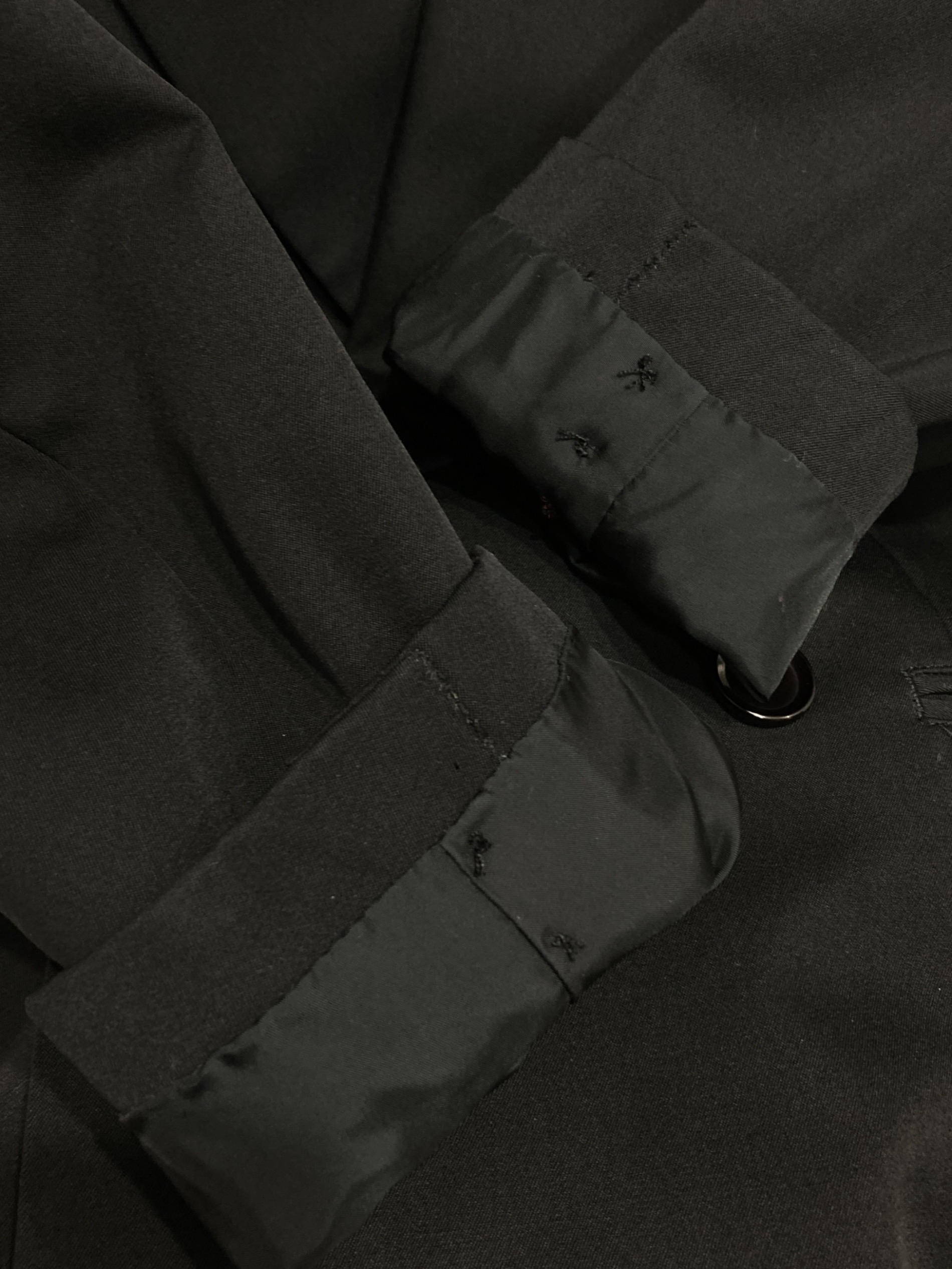 • Yohji Yamamoto FEMME(ヨウジヤマモトファム)Yohji Yamamoto FEMME (ヨウジヤマモトファム) ダブルジャケット ブラック サイズ:Sの古着・服飾アイテム 袖口補修、スレ、ヨゴレ