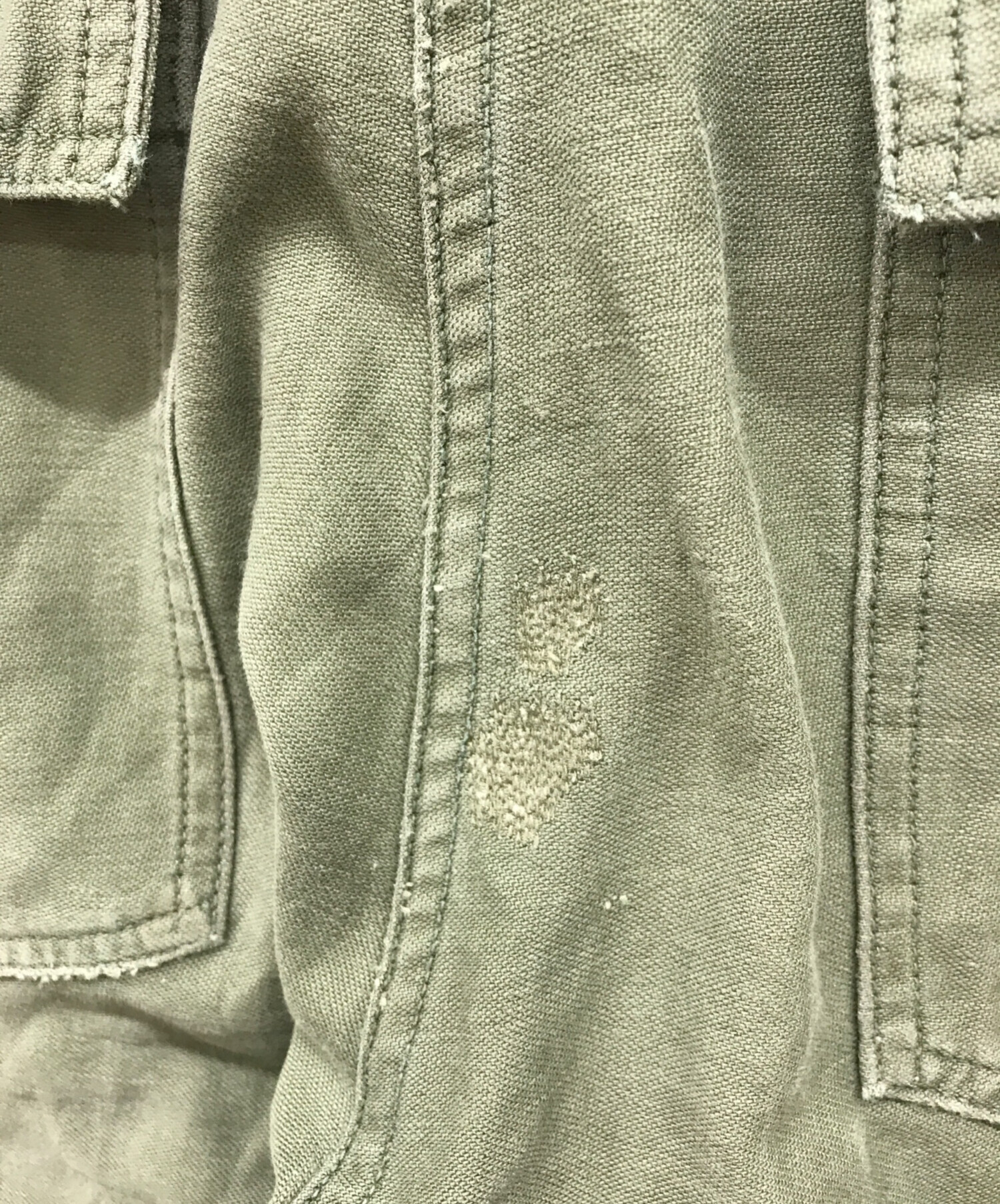 目立つシミや汚れ、におい等がある場合は商品画像や説明文にて極力表記させていただいておりますが、中古品という商品の特性上、全ての瑕疵や不備、洋服直し箇所を撮影・記載をすることは難しくなっております。また、ほとんどのアイテムは店頭と併売しておりますため、出品掲載時からコンディションが変動している場合もございます。あらかじめご了承くださいませ。