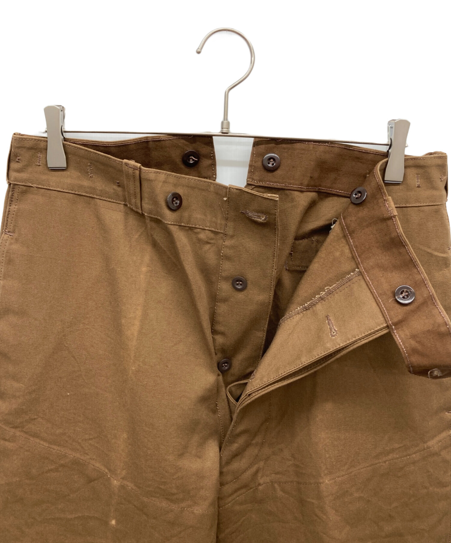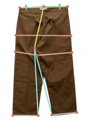 | スタッフコメント | フレンチヴィンテージよりダック地のような生地感のパンツです。針のシンチバックが付いているのも特徴です。 |