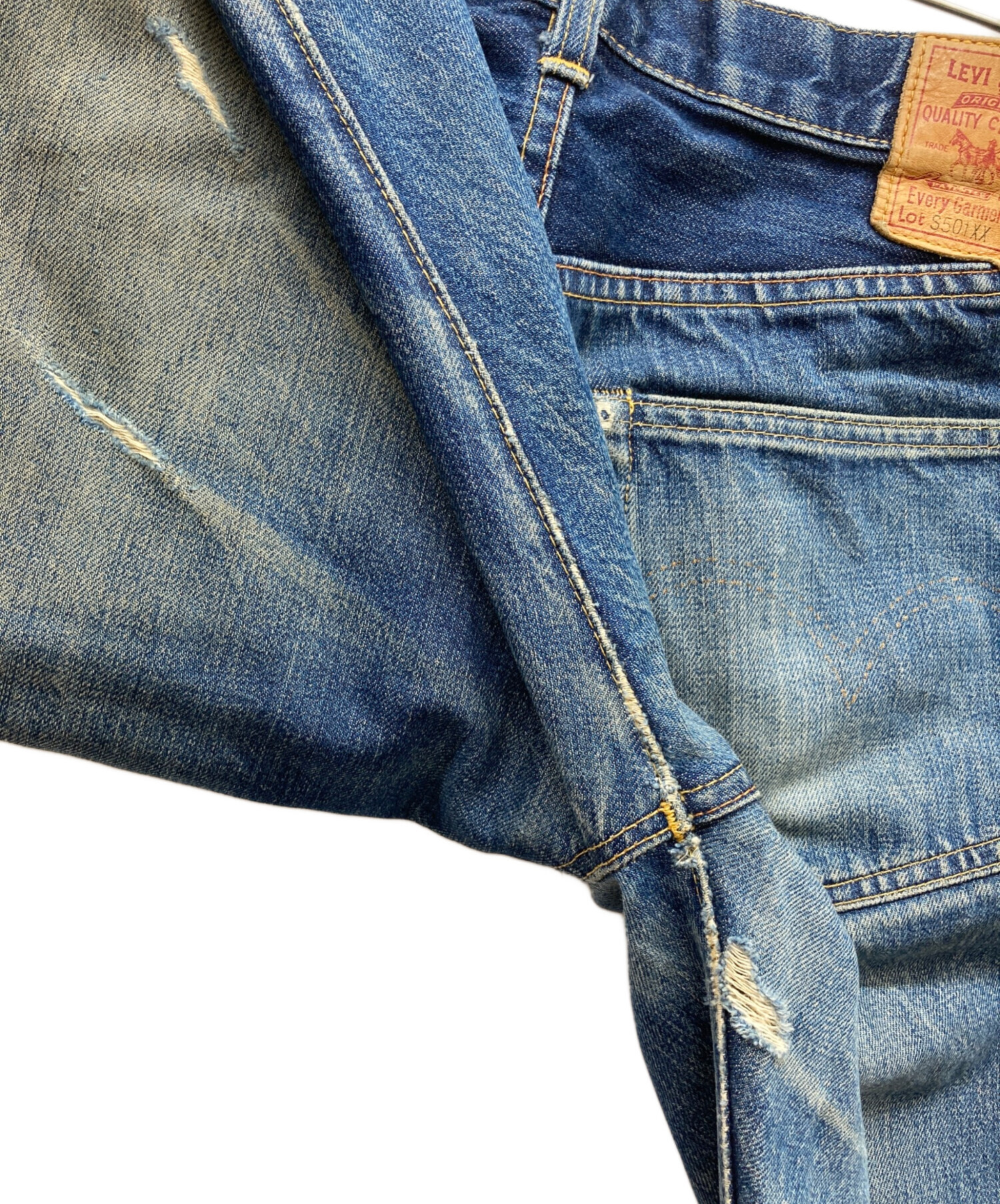 | 状態 | こちらの商品はジャンク品・修繕が必要な商品です。全体的に使用感や傷、各所ヨゴレ、アタリ・ダメージ・股ダメージ・ポケット破れや劣化などが見受けられますのであらかじめご了承ください。また店頭にて展示販売を行っている為、記載に無い細かなキズ、汚れが見受けられる場合がございます。 |