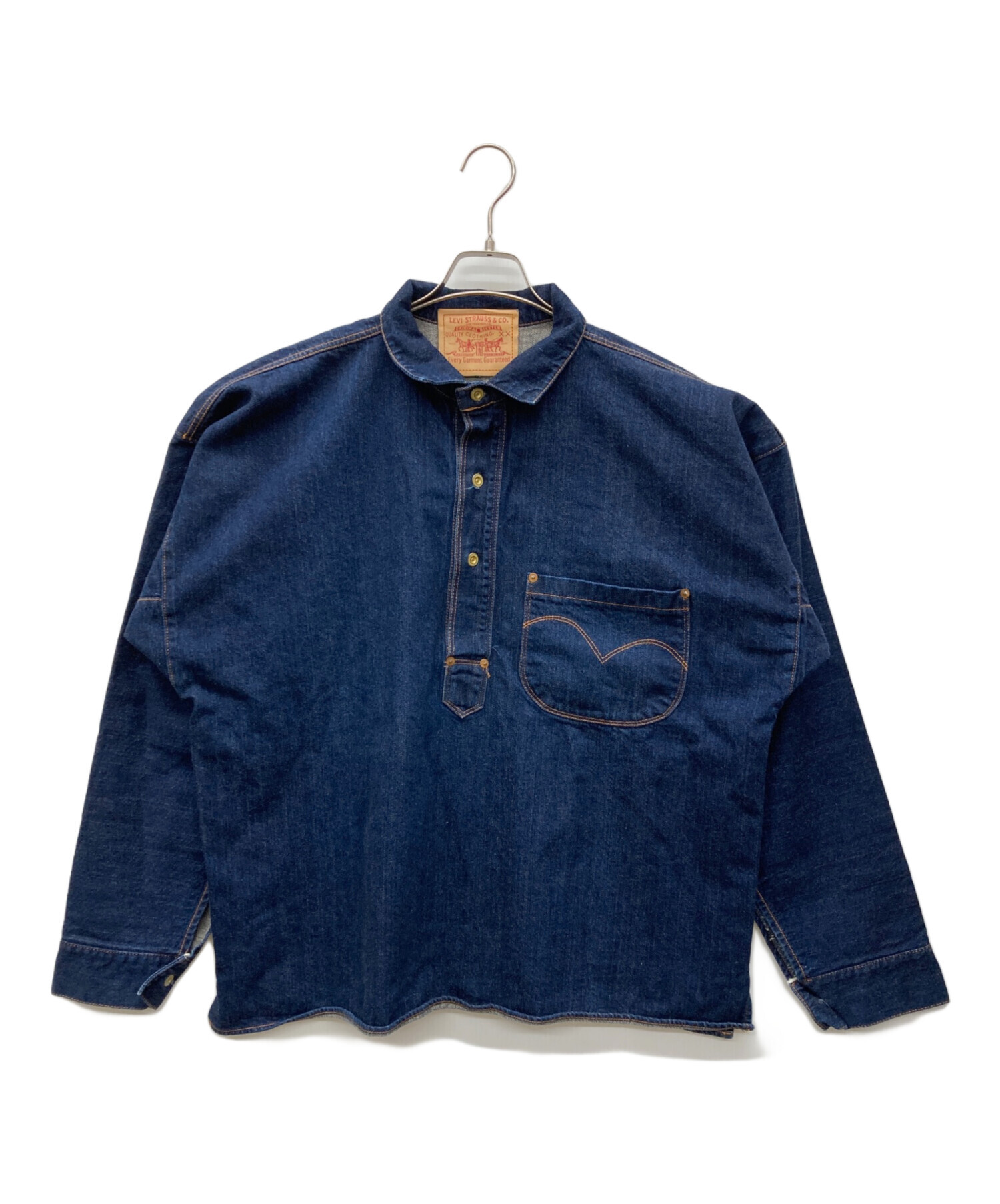 | スタッフコメント | 珍しいボックスシルエットのデニムプルオーバーです。 サイズ感もよく、きれい目リーバイスといった印象です。 |
