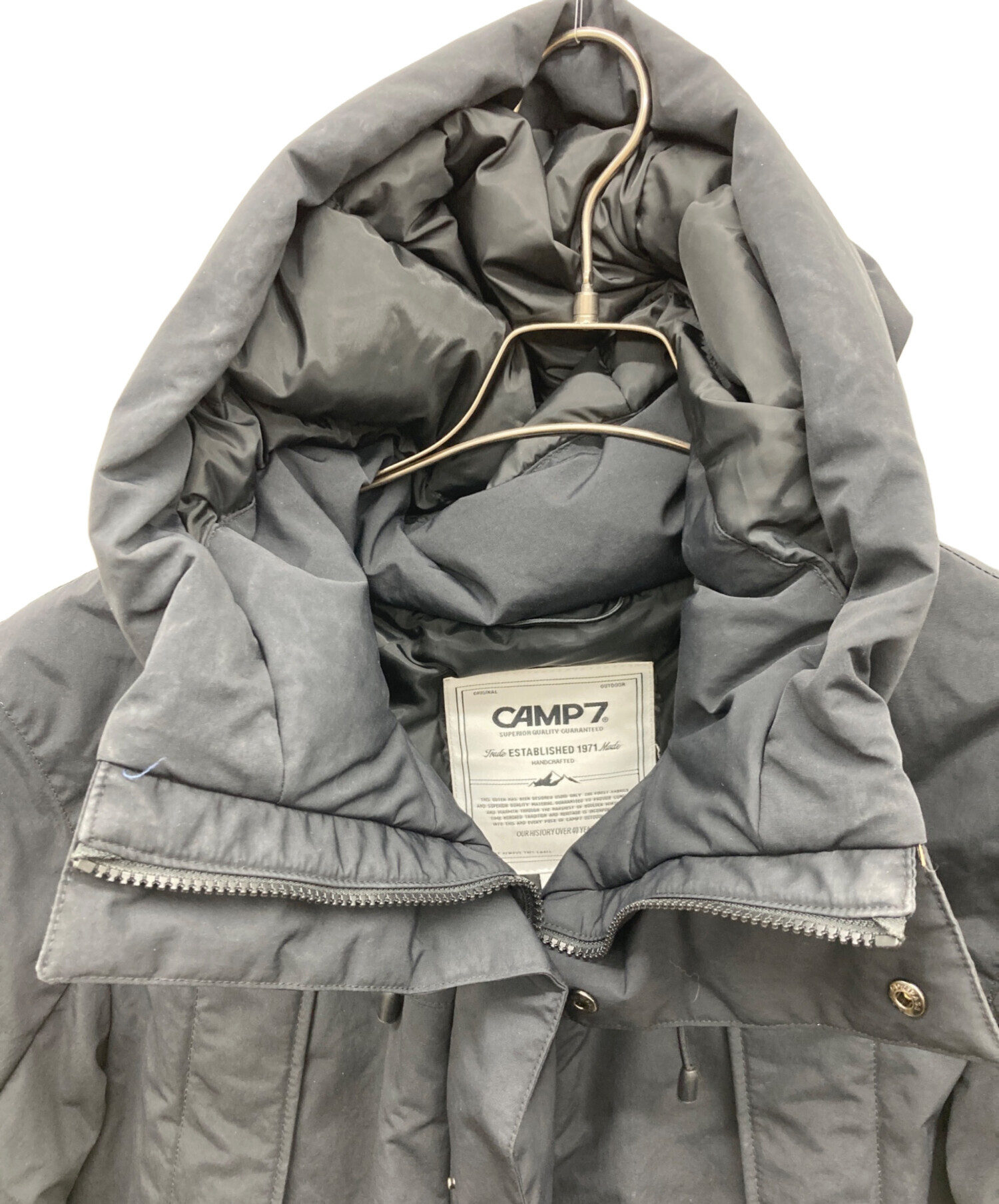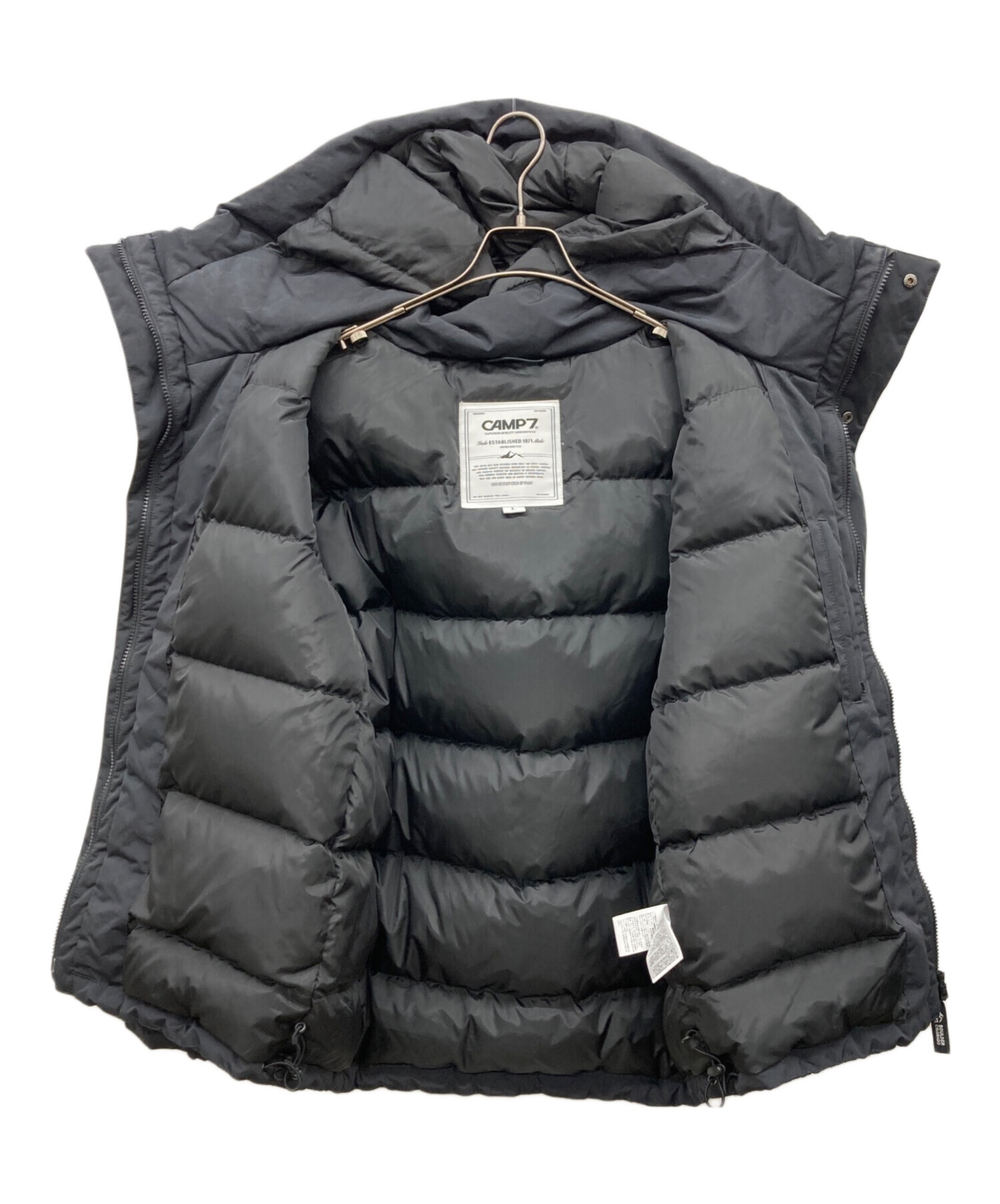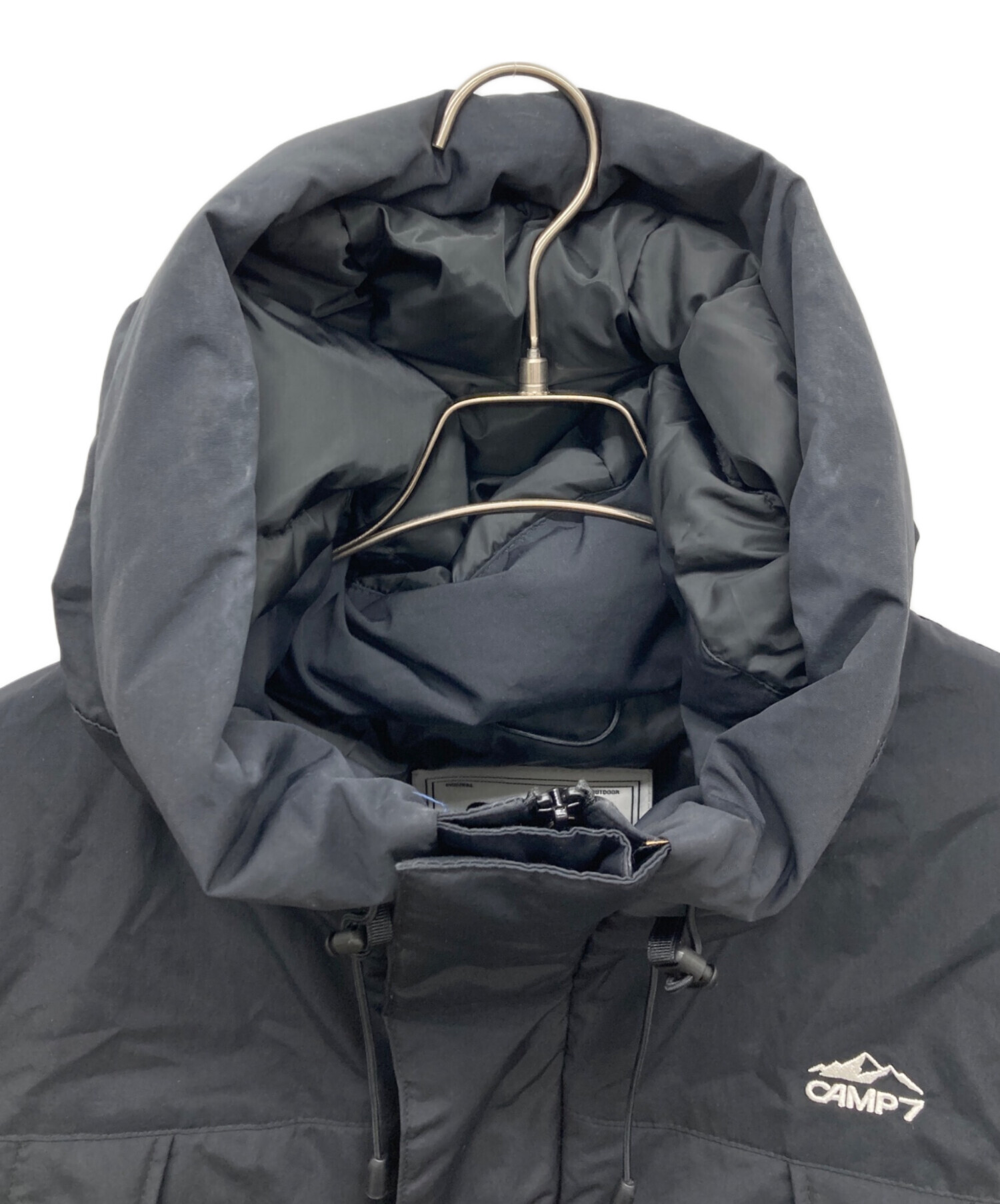 • CAMP 7(キャンプ7)CAMP 7 (キャンプ7) 切替フードダウンジャケット ブラック サイズ:Lの古着・服飾アイテム 両袖裏に汚れあり