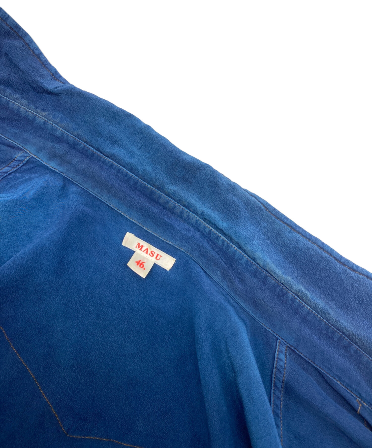 • masu(エムエーエスユー)masu (エムエーエスユー) ZIP-UP SILK WESTERN SHIRTS ネイビー サイズ:46の古着・服飾アイテム 汚れあり
