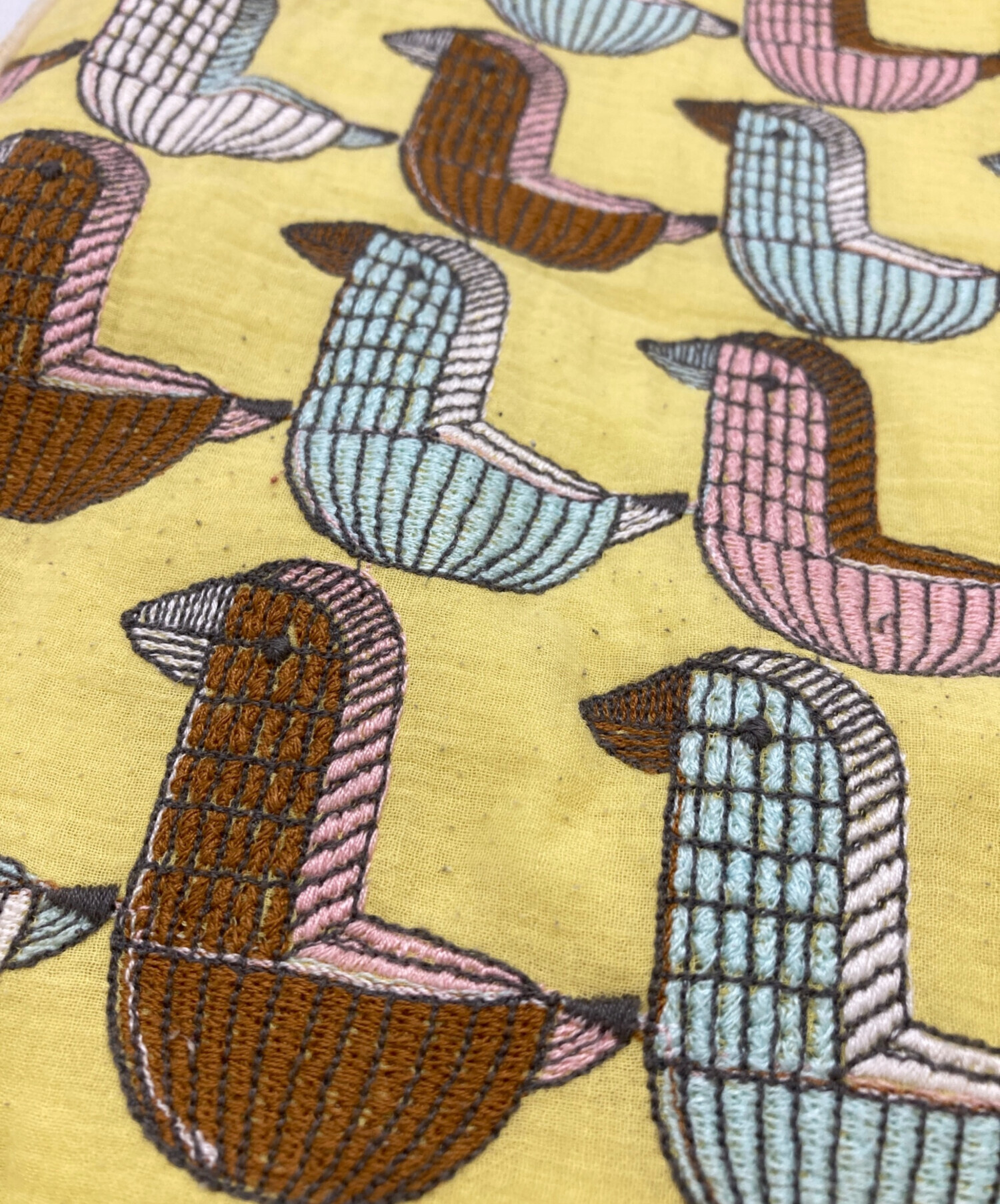 | 素材 | 表生地:綿 100% 刺繍部分:綿 100% 裏生地:綿 100% パイピング部分合成皮革使用 |