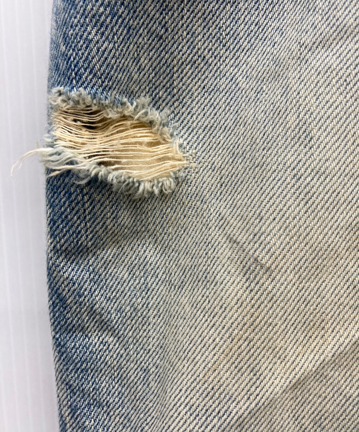 スタッフコメント ひざ部分の切れ込みが特徴的なデニムパンツです。