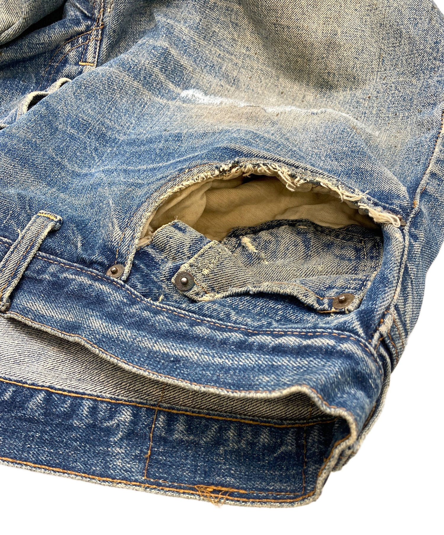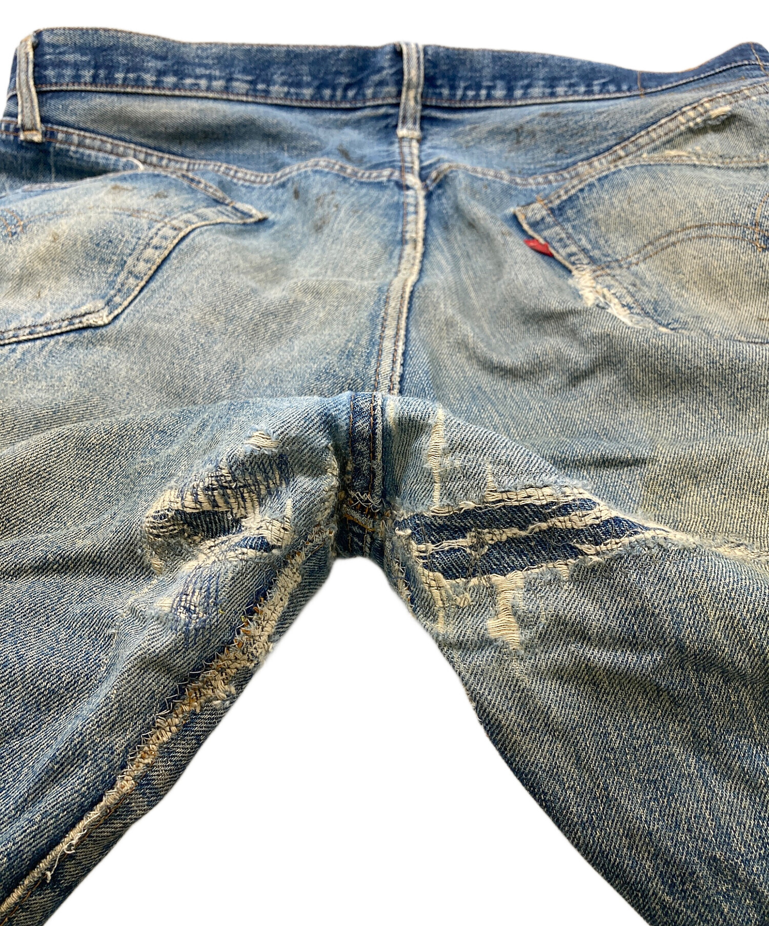 | 状態 | こちらの商品はヴィンテージ中古品の為、使用に伴いますキズ、汚れ、裾・股など各所リペア、ポケット破れ、パッチ欠損、ダメージが各所に見受けられます。店頭にて展示販売を行っている為、記載に無い細かなキズ、汚れが見受けられる場合がございます。 *掲載箇所以外にも上記に該当する箇所ございます。 |
