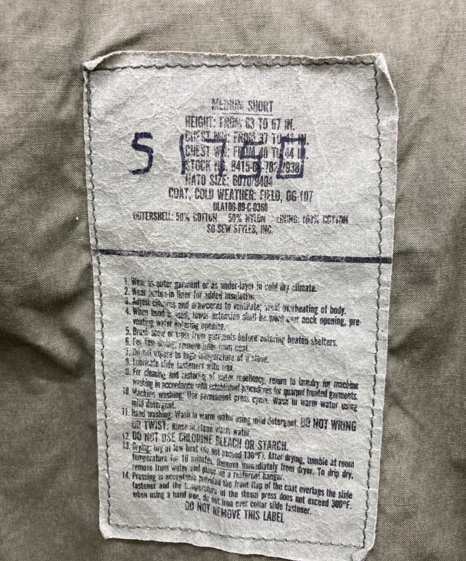 | スタッフコメント | 1989年納品のM-65フィールドジャケットです。 |