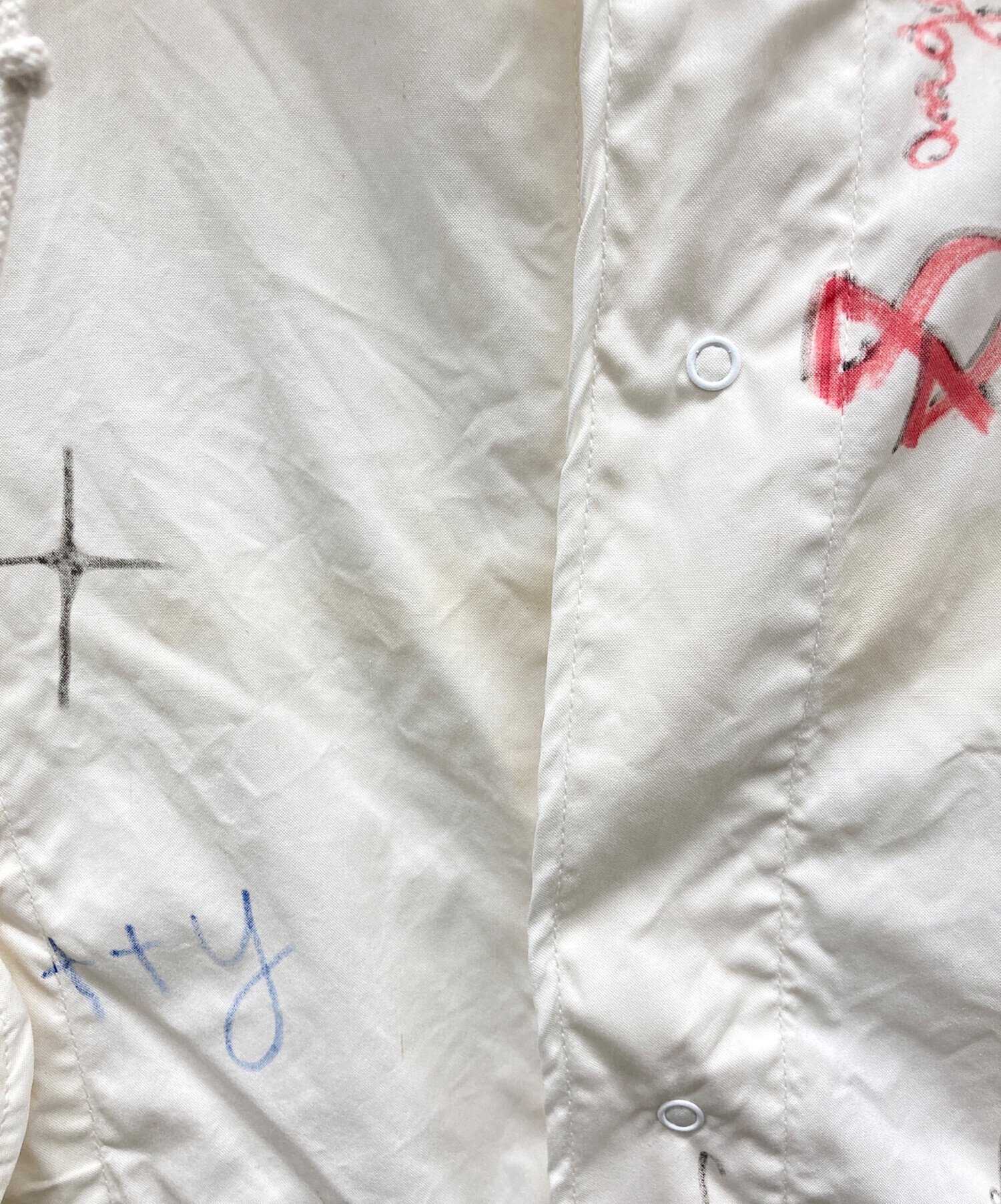 目立つシミや汚れ、におい等がある場合は商品画像や説明文にて極力表記させていただいておりますが、中古品という商品の特性上、全ての瑕疵や不備、洋服直し箇所を撮影・記載をすることは難しくなっております。また、ほとんどのアイテムは店頭と併売しておりますため、出品掲載時からコンディションが変動している場合もございます。あらかじめご了承くださいませ。