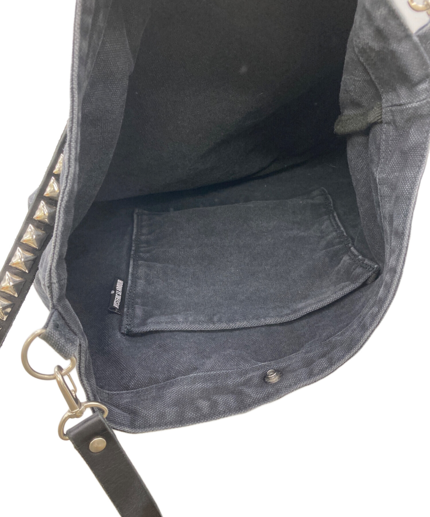 | スタッフコメント | SEE NO EVIL(見ざる)をモチーフにした、ヒステリックグラマーを象徴するグラフィックが大胆にプリントされています。 ストラップ部分にはピラミッド型のスタッズがあしらわれています。 |
