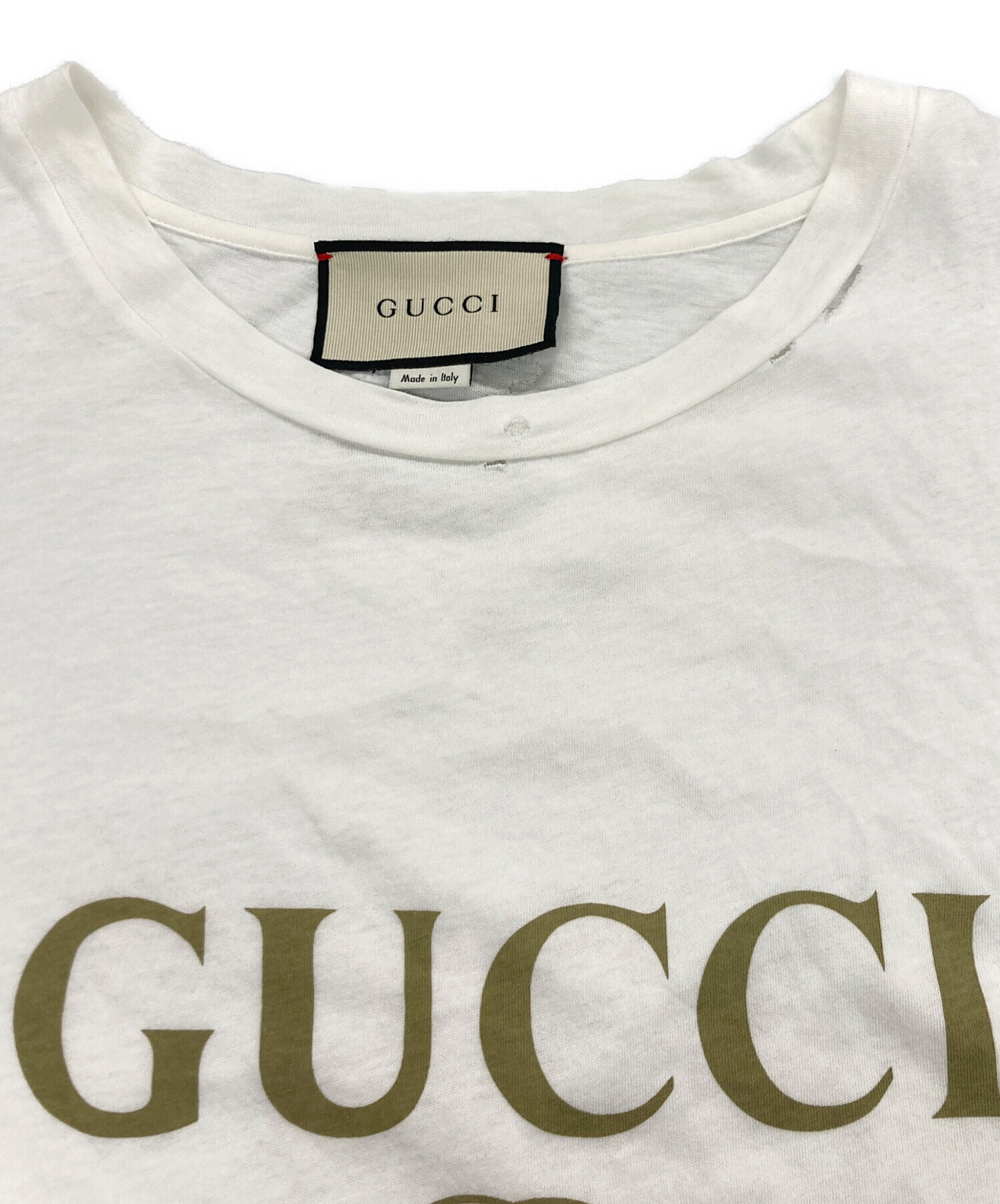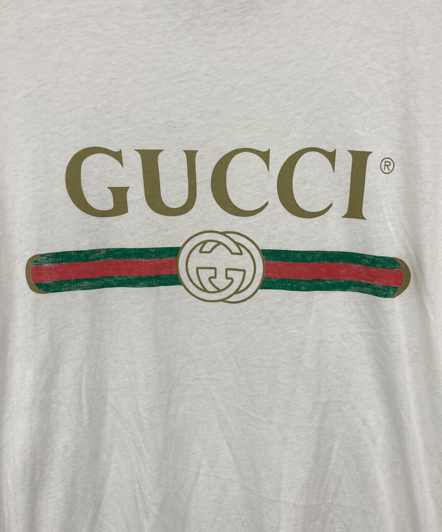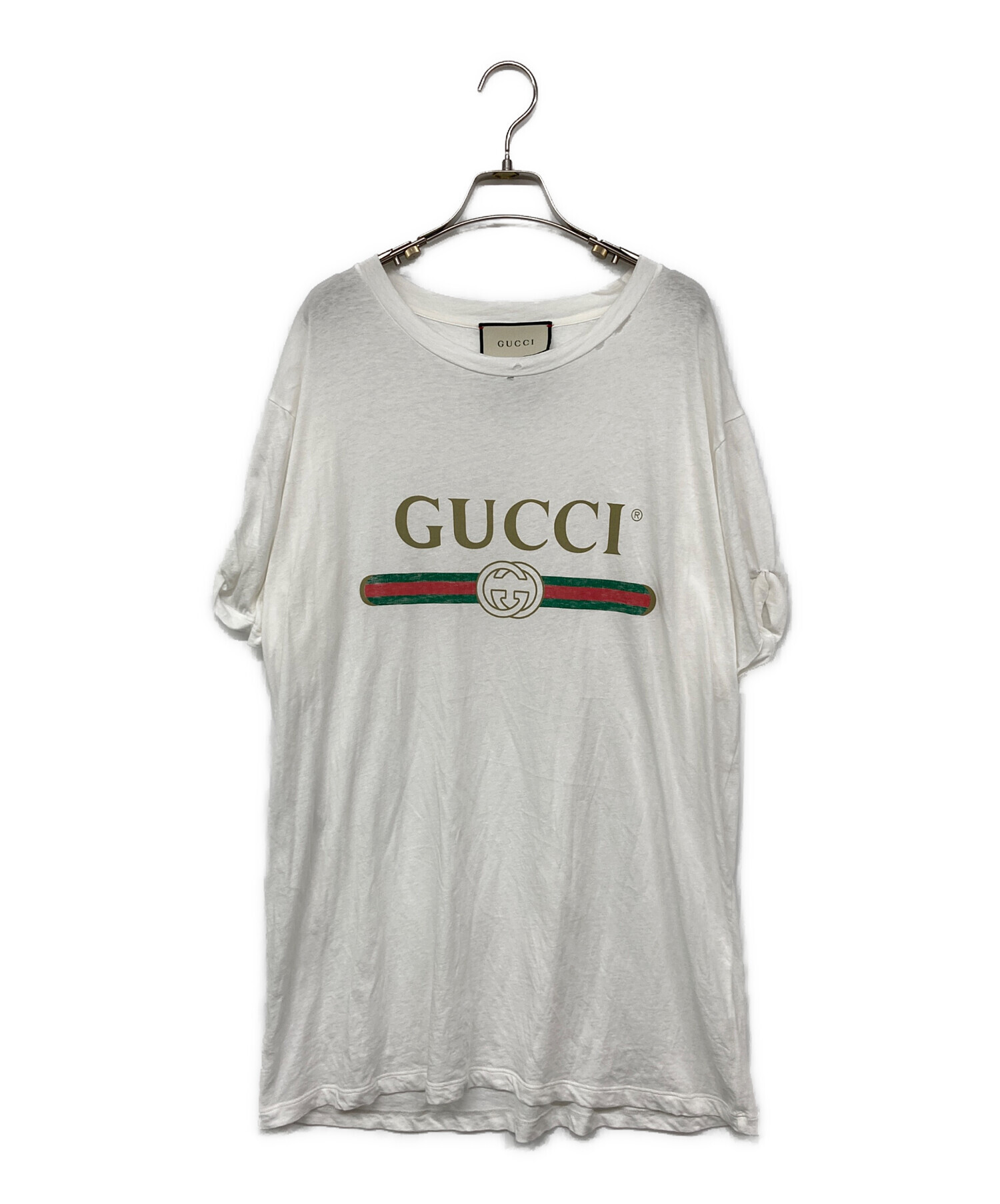 • GUCCI(グッチ)GUCCI (グッチ) ロゴプリントTシャツ ホワイト サイズ:Lの古着・服飾アイテム 首回りヨゴレ有
