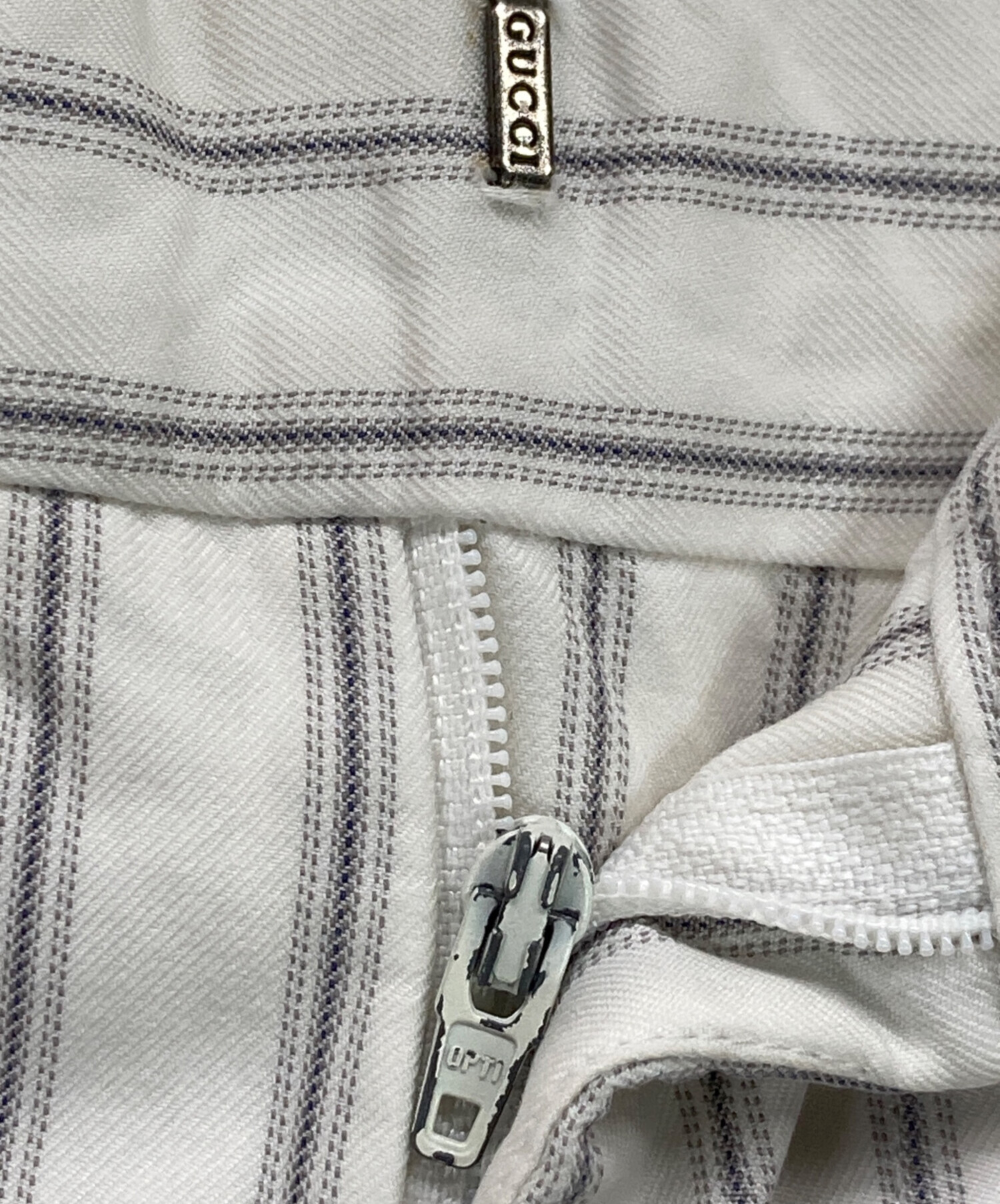 • GUCCI(グッチ)GUCCI (グッチ) ストライプパンツ ホワイト サイズ:48Rの古着・服飾アイテム ジップ塗装ハガレ有