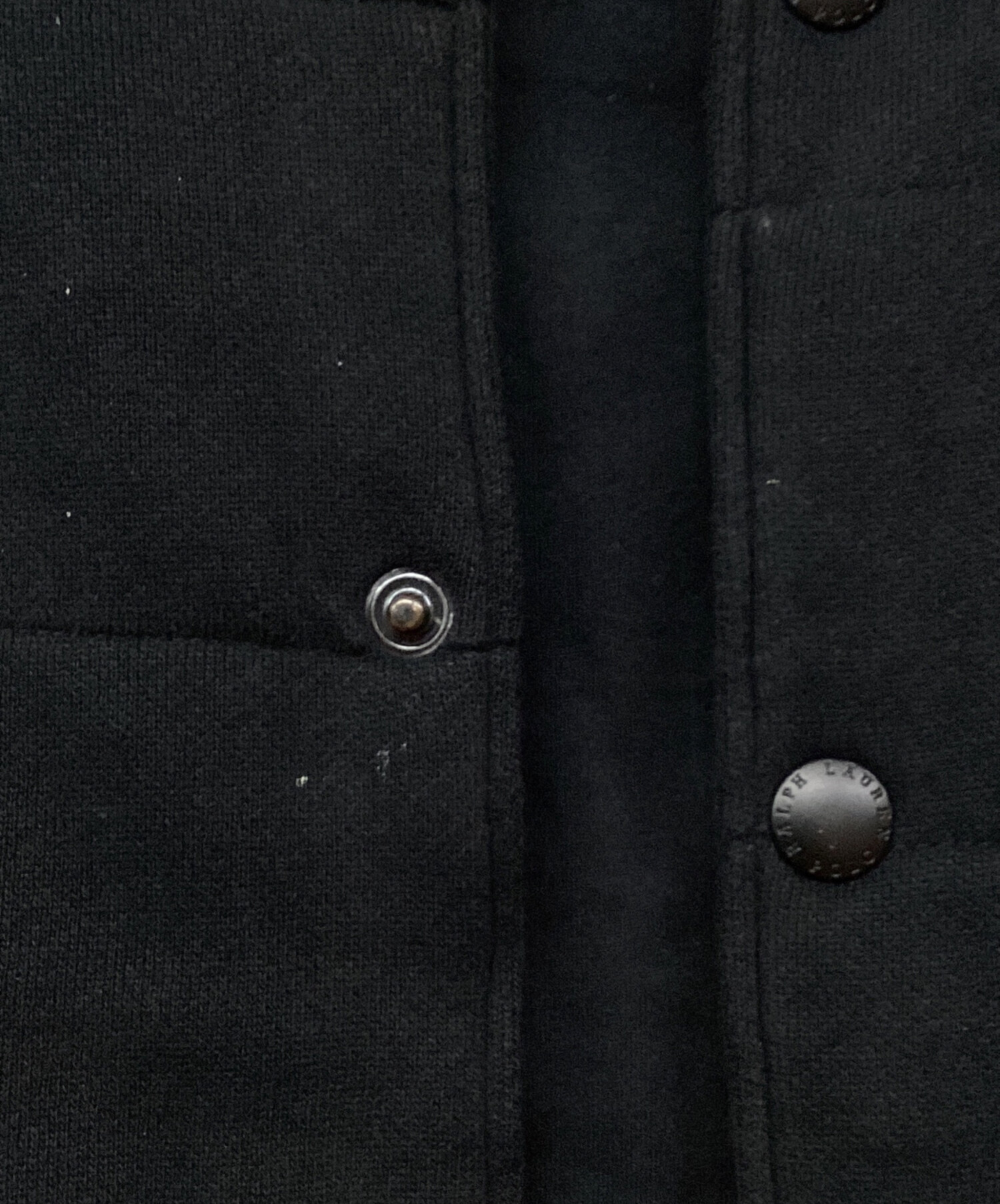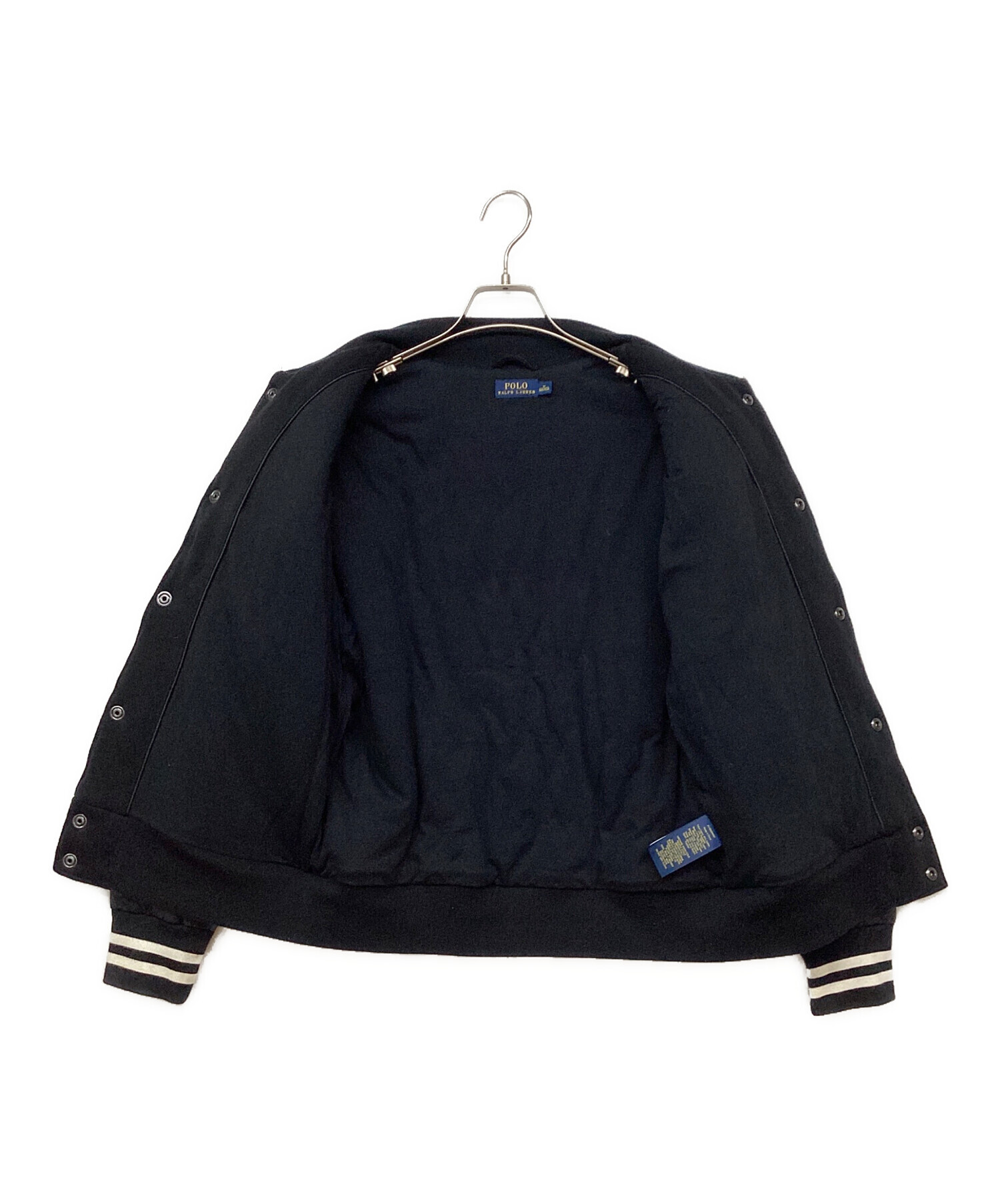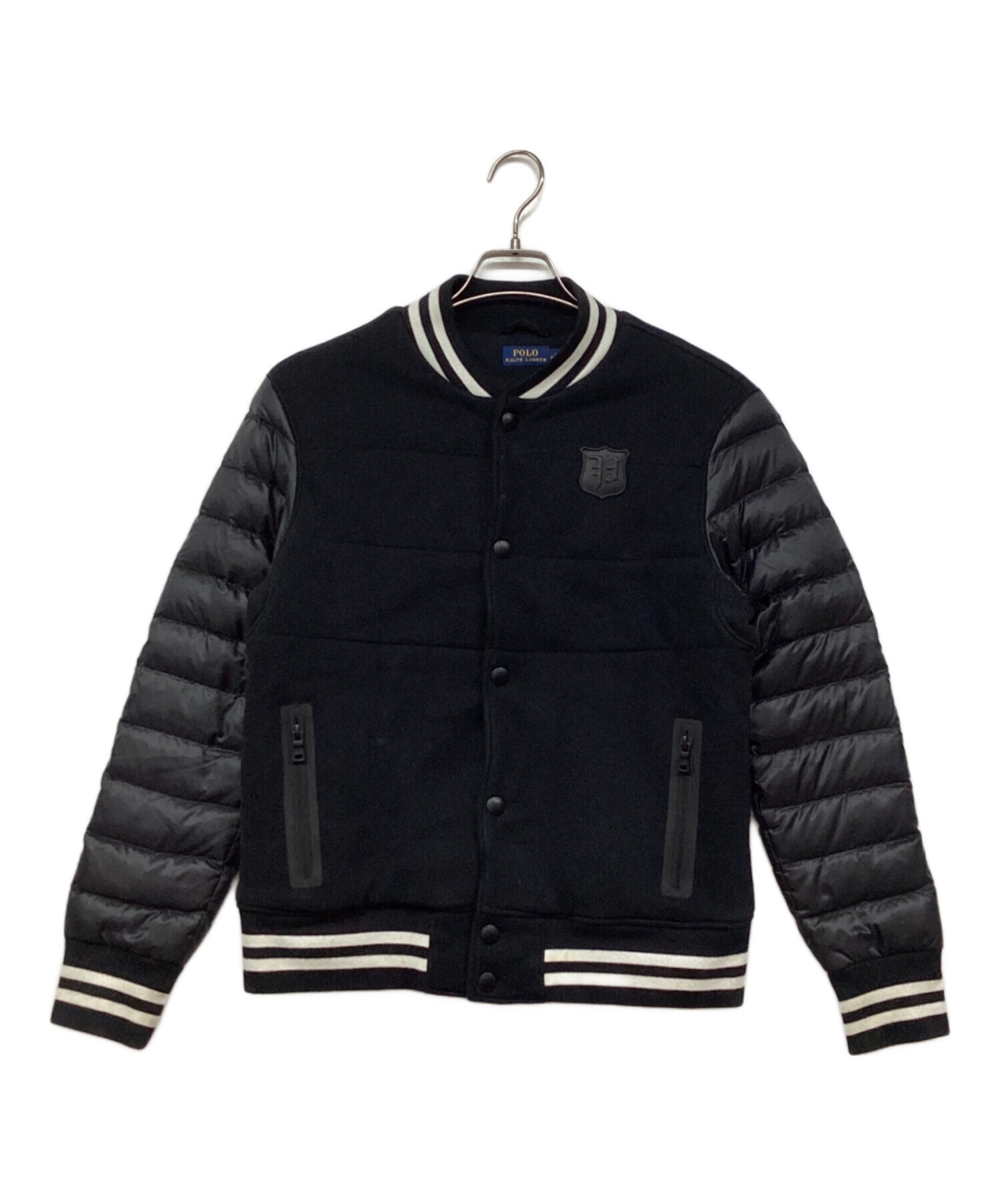 • POLO RALPH LAUREN(ポロ・ラルフローレン)POLO RALPH LAUREN (ポロ・ラルフローレン) down sleeve sweat jumper ダウンスイッチスタジャン ブラック サイズ:Mの古着・服飾アイテム ヨゴレ・毛羽立ち有