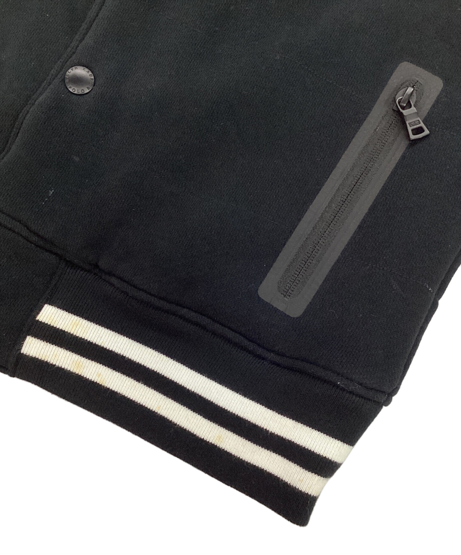 • POLO RALPH LAUREN(ポロ・ラルフローレン)POLO RALPH LAUREN (ポロ・ラルフローレン) down sleeve sweat jumper ダウンスイッチスタジャン ブラック サイズ:Mの古着・服飾アイテム 袖口ヨゴレ有