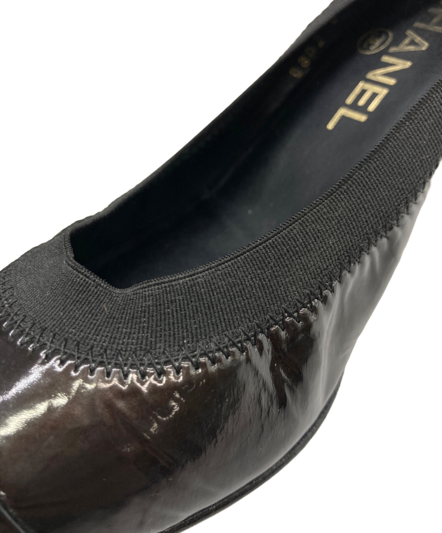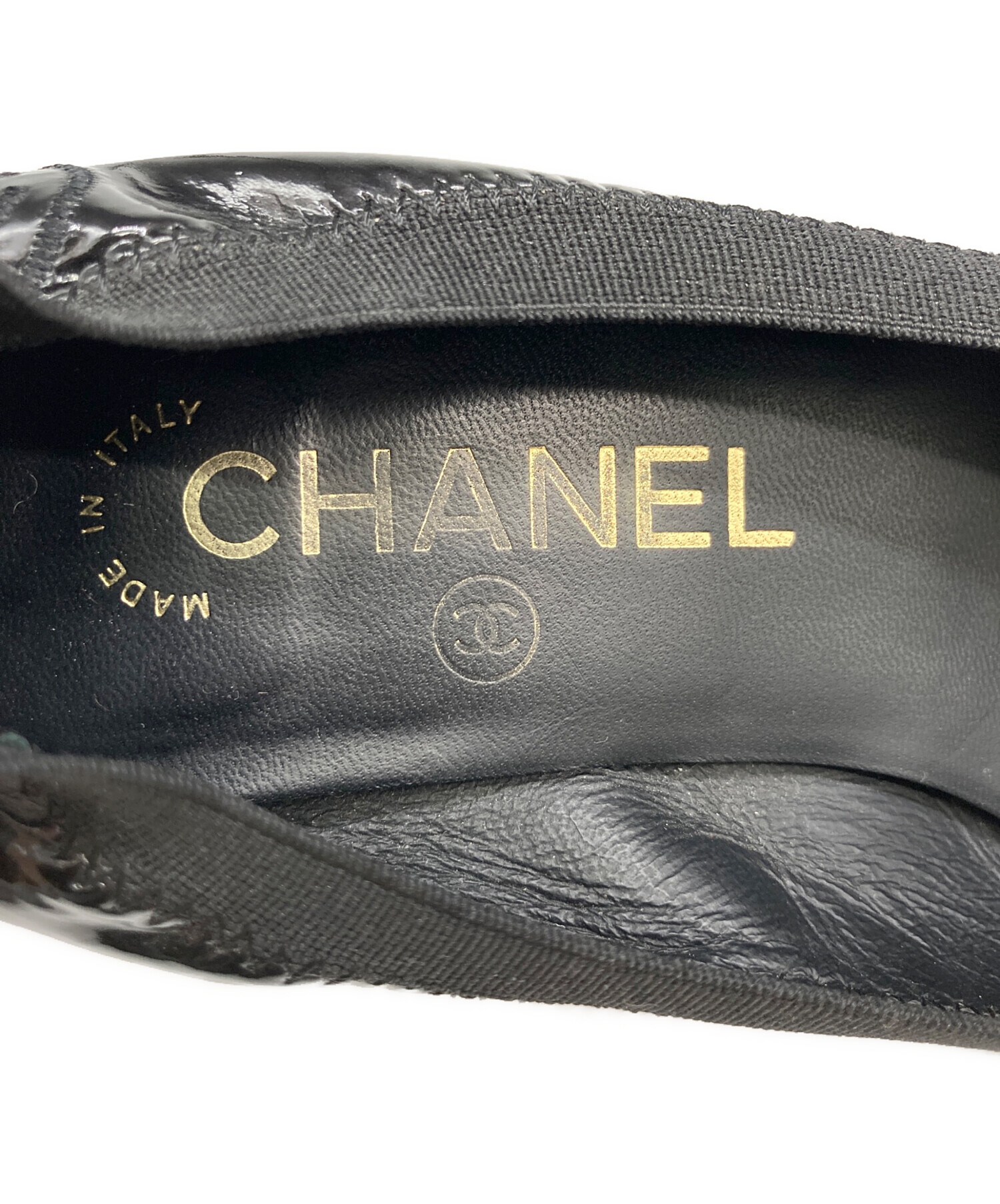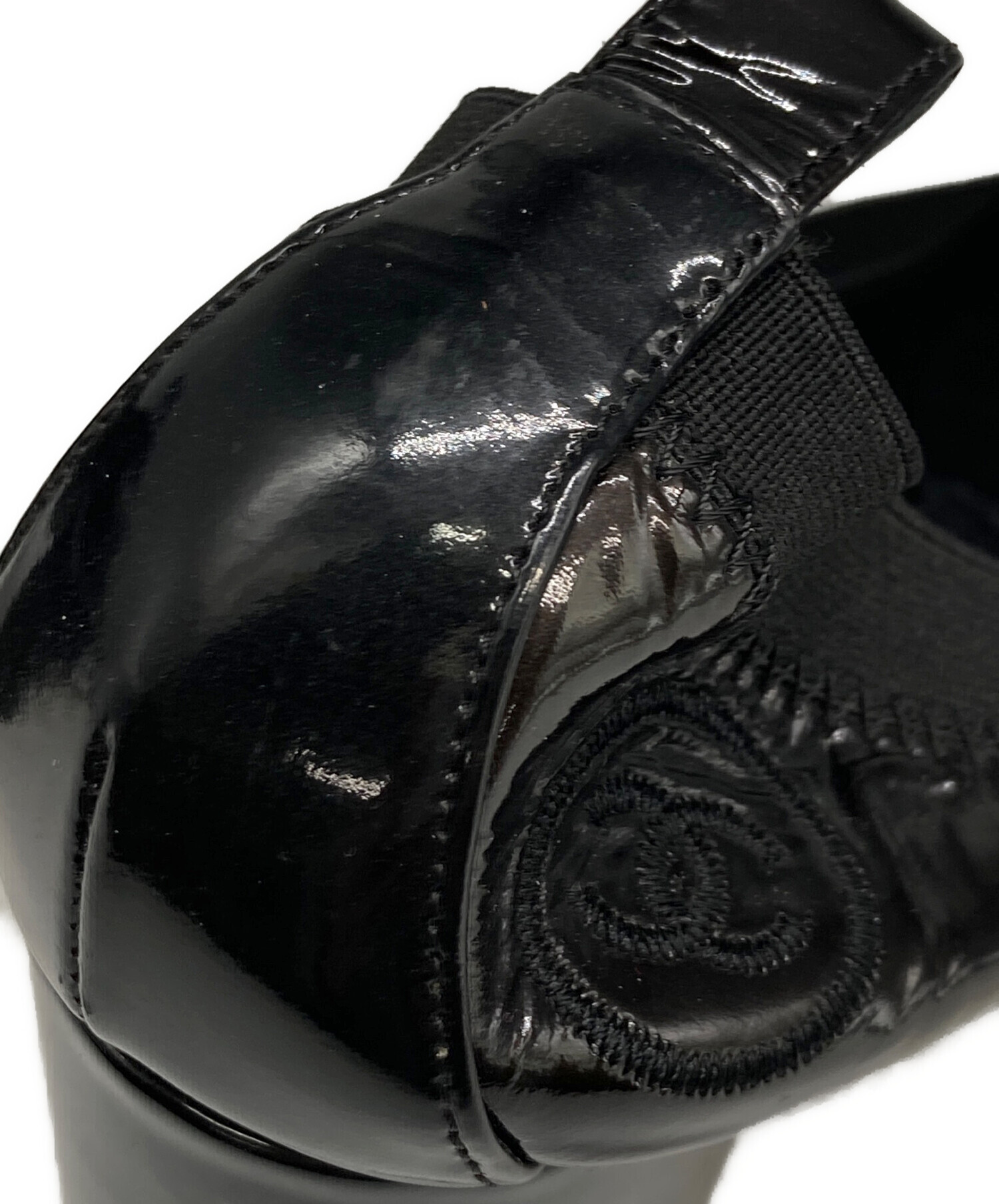 • CHANEL(シャネル)CHANEL (シャネル) ココマーク刺繍エナメルパンプス ブラック サイズ:37 1/2の古着・服飾アイテム 左足内部ヨゴレ有