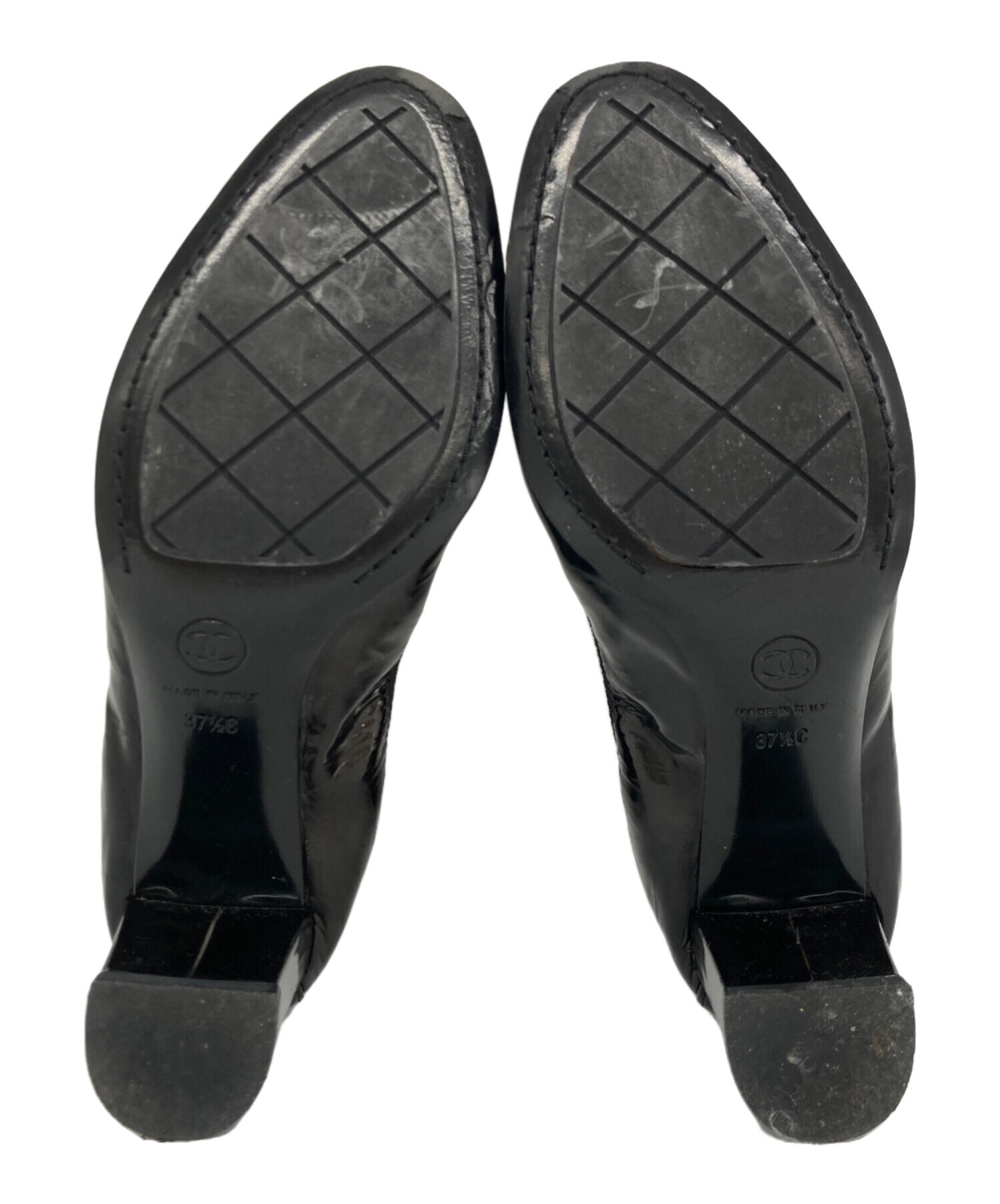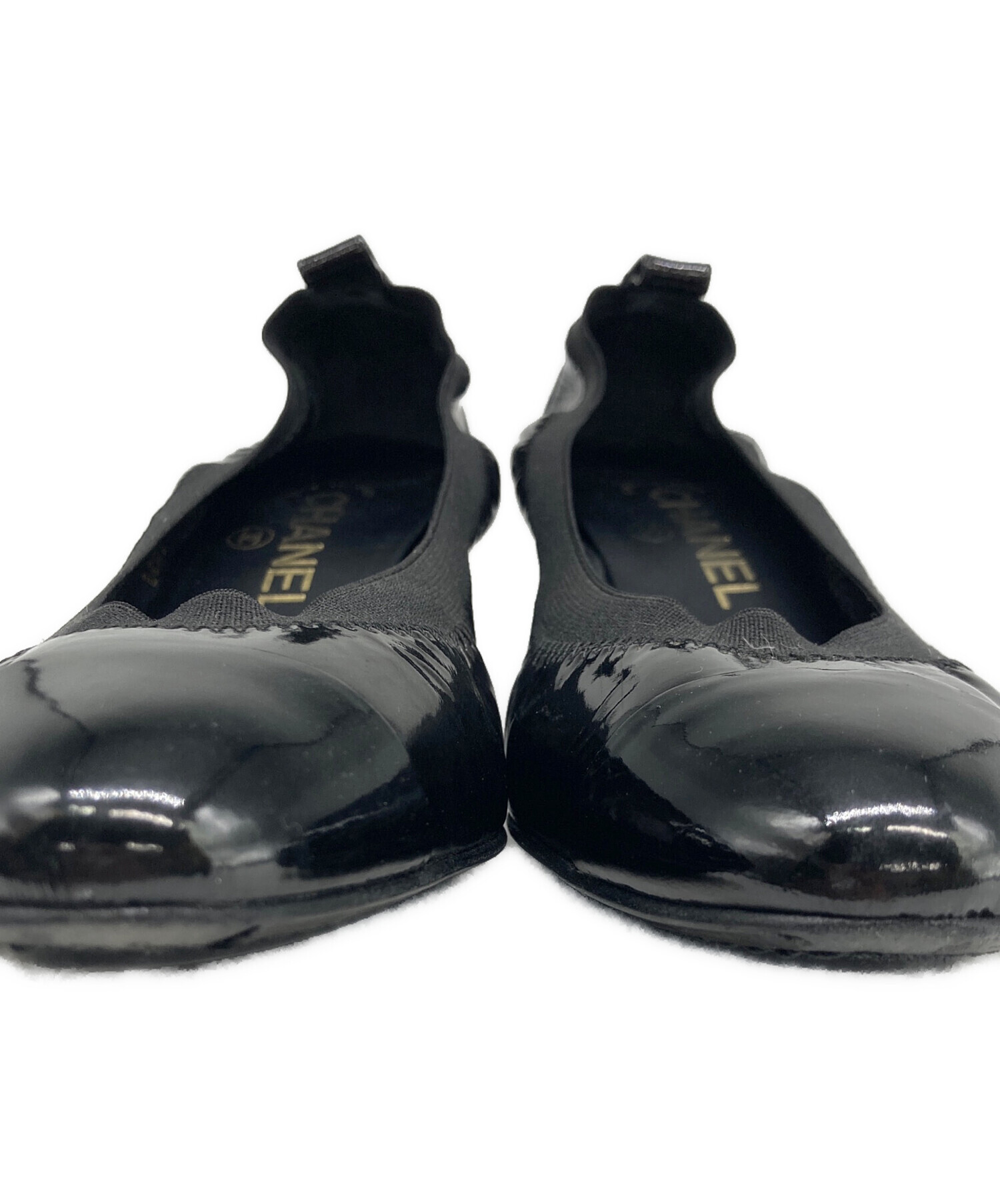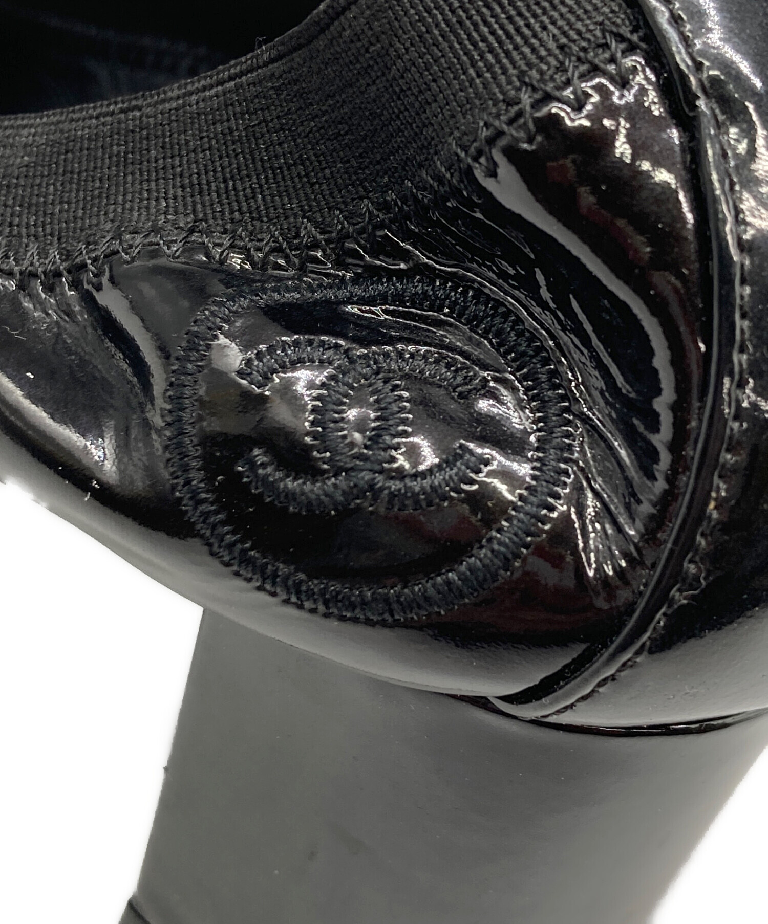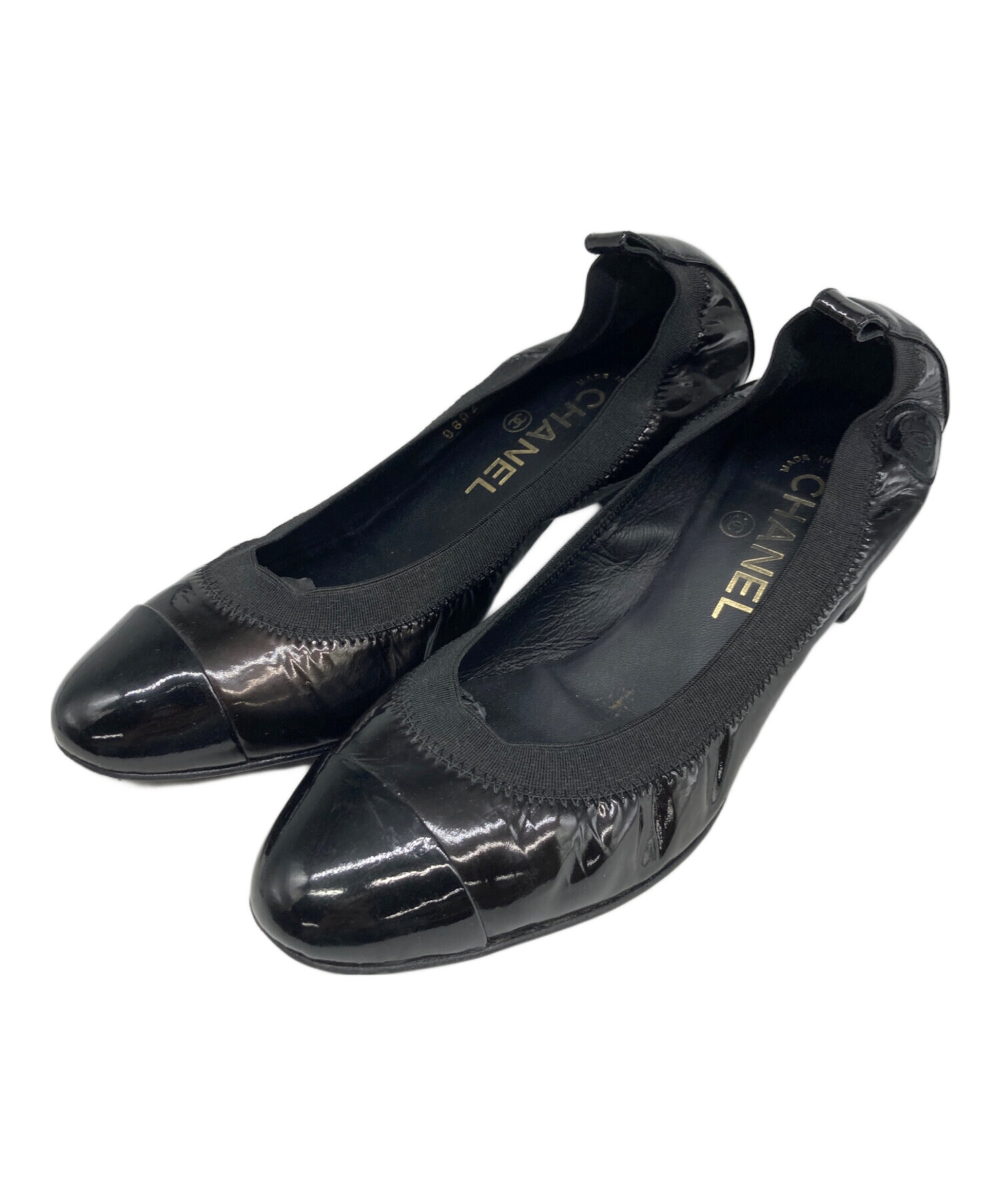 • CHANEL(シャネル)CHANEL (シャネル) ココマーク刺繍エナメルパンプス ブラック サイズ:37 1/2の古着・服飾アイテム 左足内部ヨゴレ有