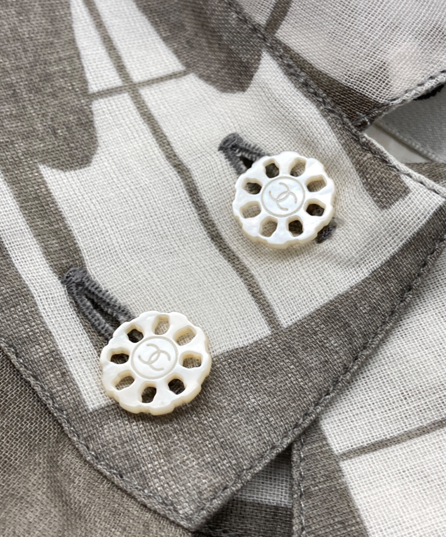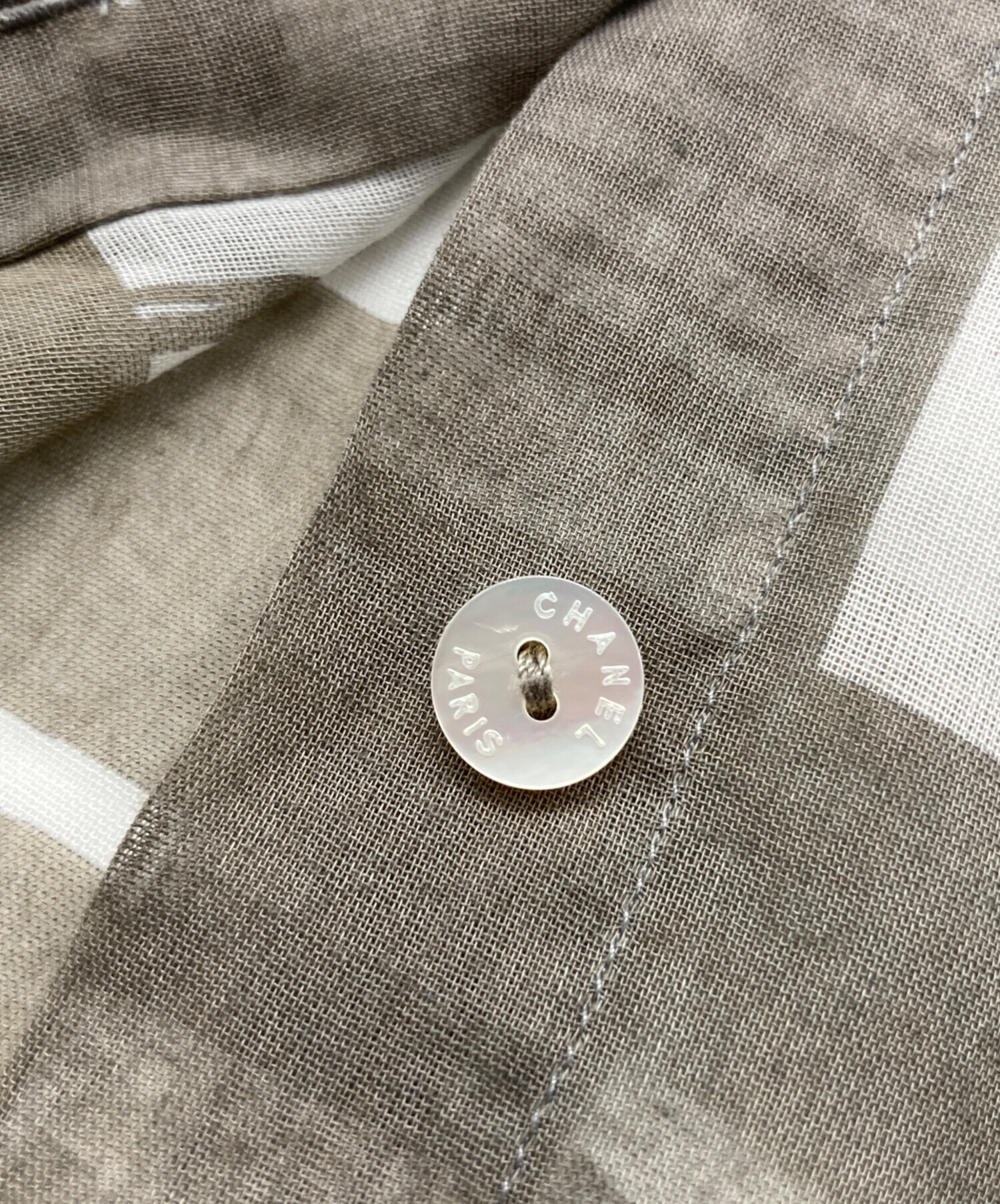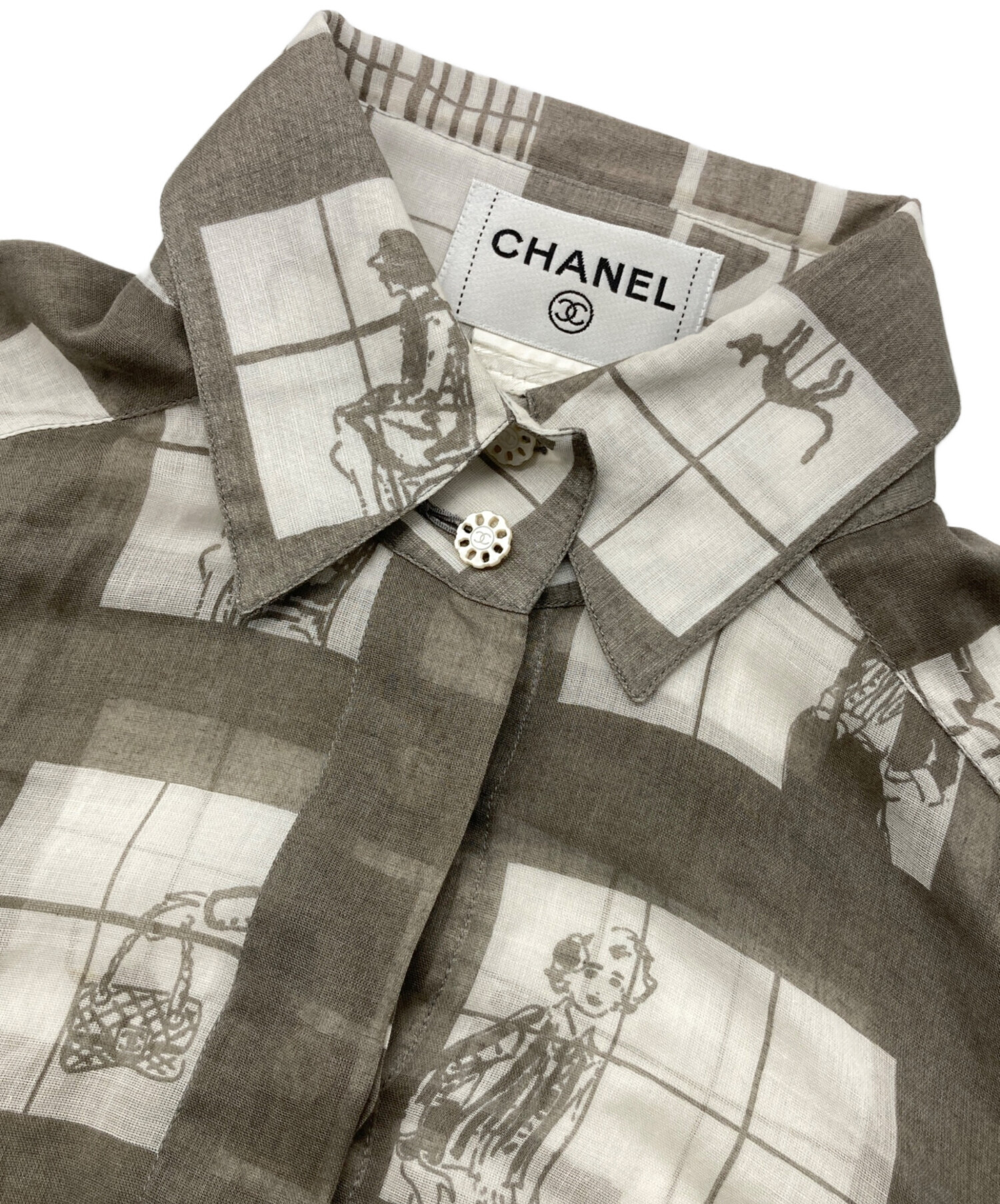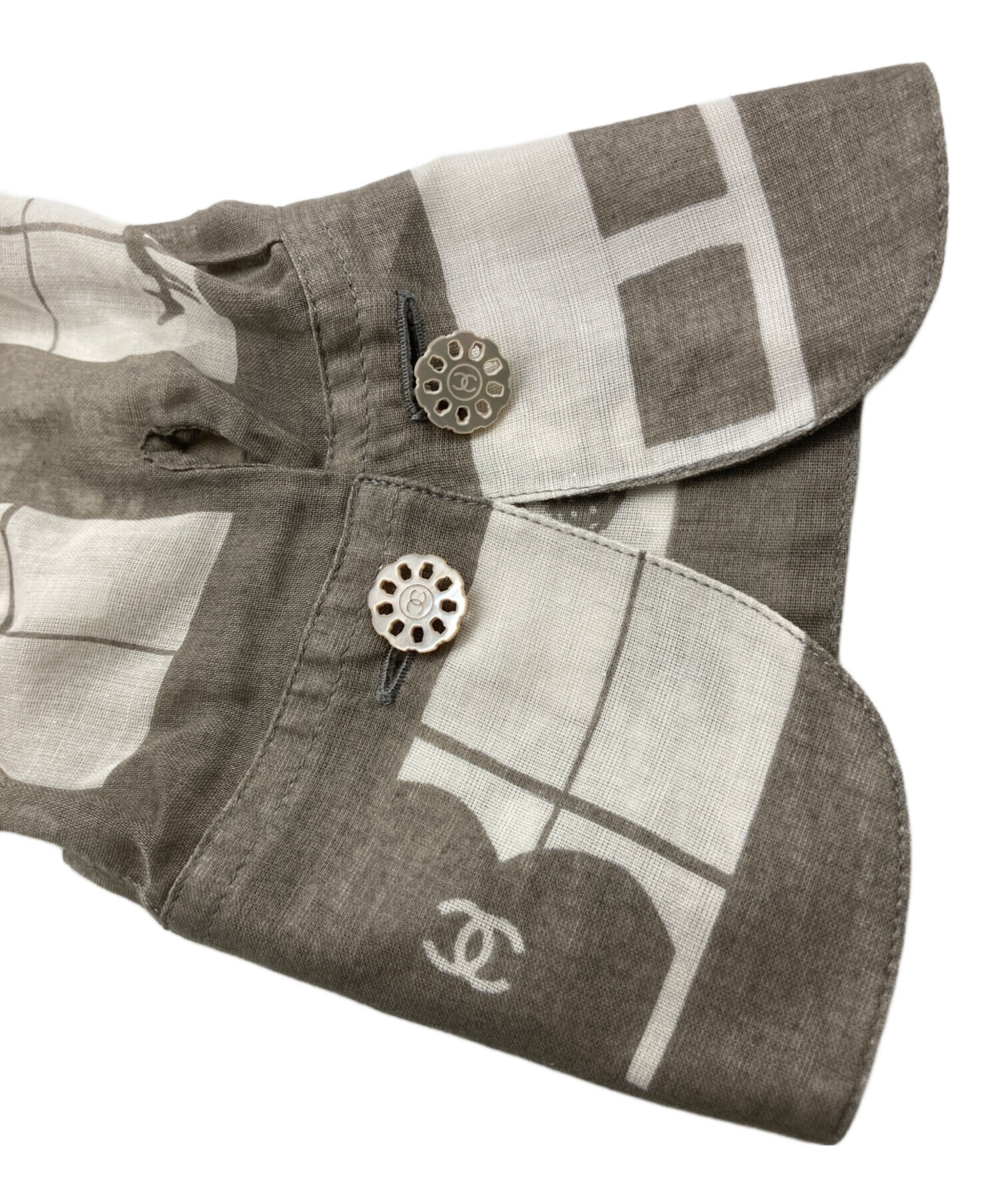 • CHANEL(シャネル)CHANEL (シャネル) ウィンドウズラインシアーシャツ グレー サイズ:不明の古着・服飾アイテム ボタン裏サビ