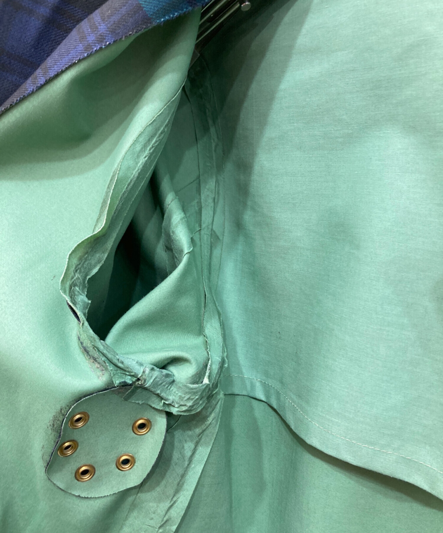 目立つシミや汚れ、におい等がある場合は商品画像や説明文にて極力表記させていただいておりますが、中古品という商品の特性上、全ての瑕疵や不備、洋服直し箇所を撮影・記載をすることは難しくなっております。また、ほとんどのアイテムは店頭と併売しておりますため、出品掲載時からコンディションが変動している場合もございます。あらかじめご了承くださいませ。