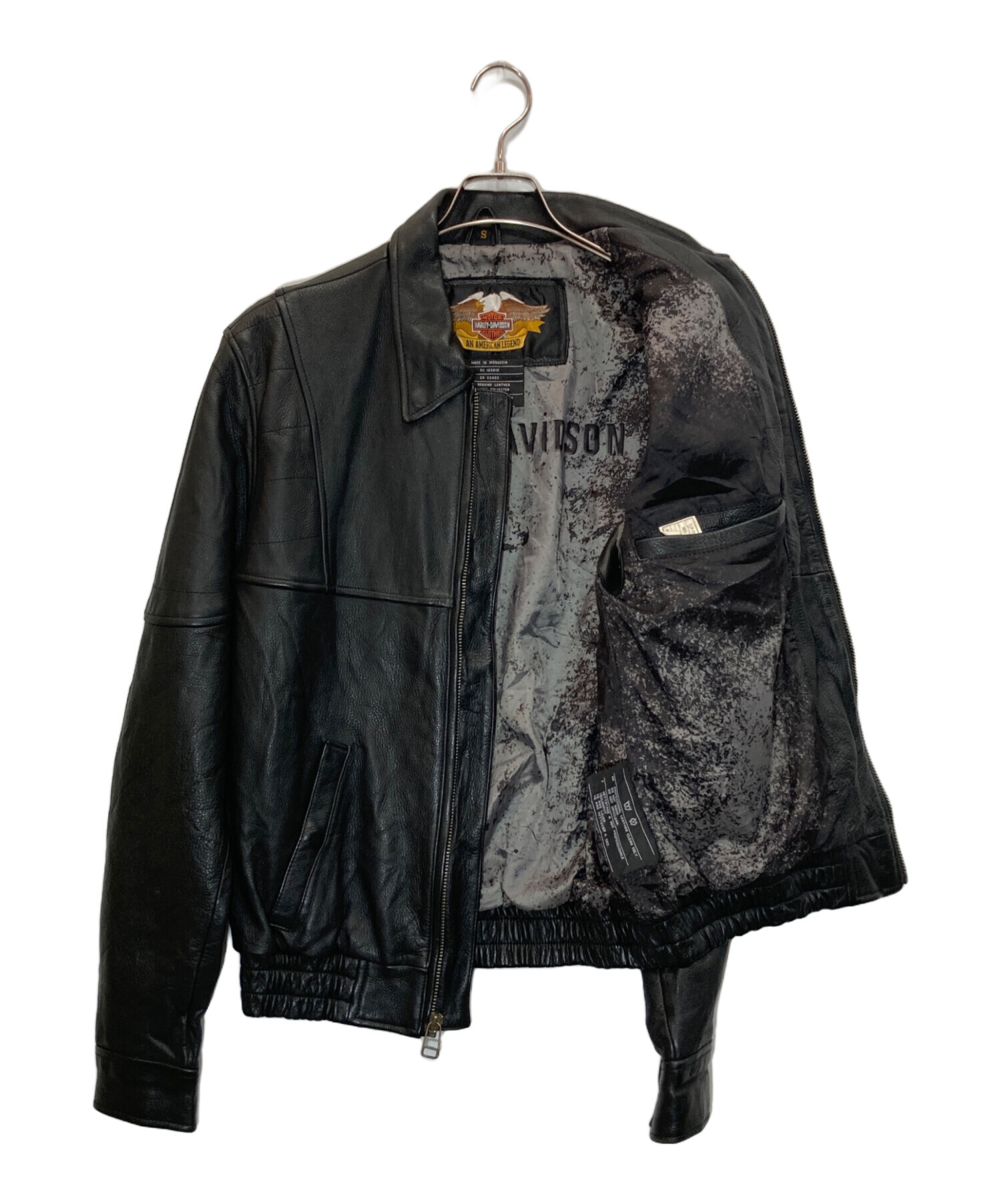 • HARLEY-DAVIDSON(ハーレーダビッドソン)HARLEY-DAVIDSON (ハーレーダビッドソン) 襟付きレザージャケット ブラック サイズ:Sの古着・服飾アイテム 金具ヨゴレ有