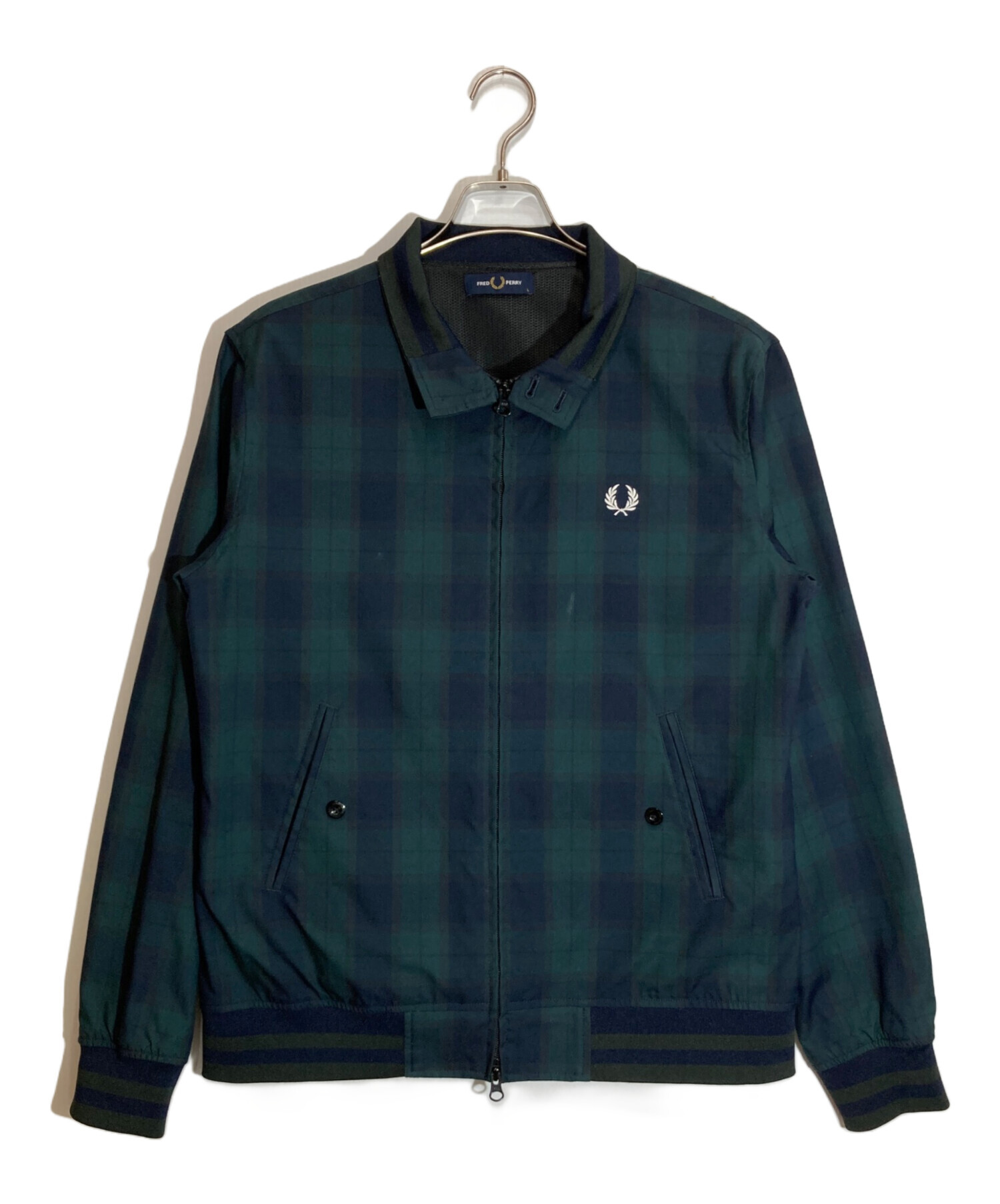 • FRED PERRY(フレッドペリー)FRED PERRY (フレッドペリー) BEAMS (ビームス) 別注 Harrington Jacket ネイビー×グリーン サイズ:Ⅼの古着・服飾アイテム 毛羽立ち・ヨゴレ有