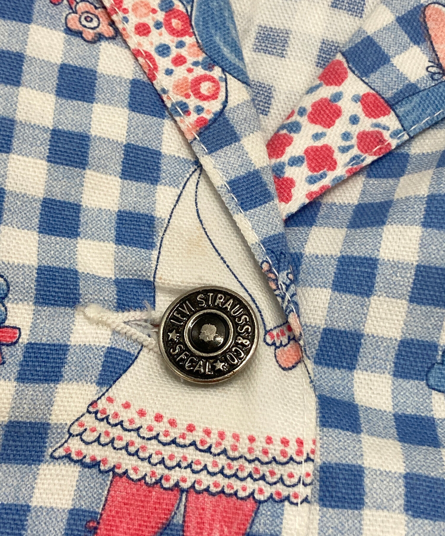 • miss levis(ミスリーバイス)miss levis (ミスリーバイス) プリントギンガムチェックジャケット ブルー サイズ:下記参照の古着・服飾アイテム ヨゴレ有
