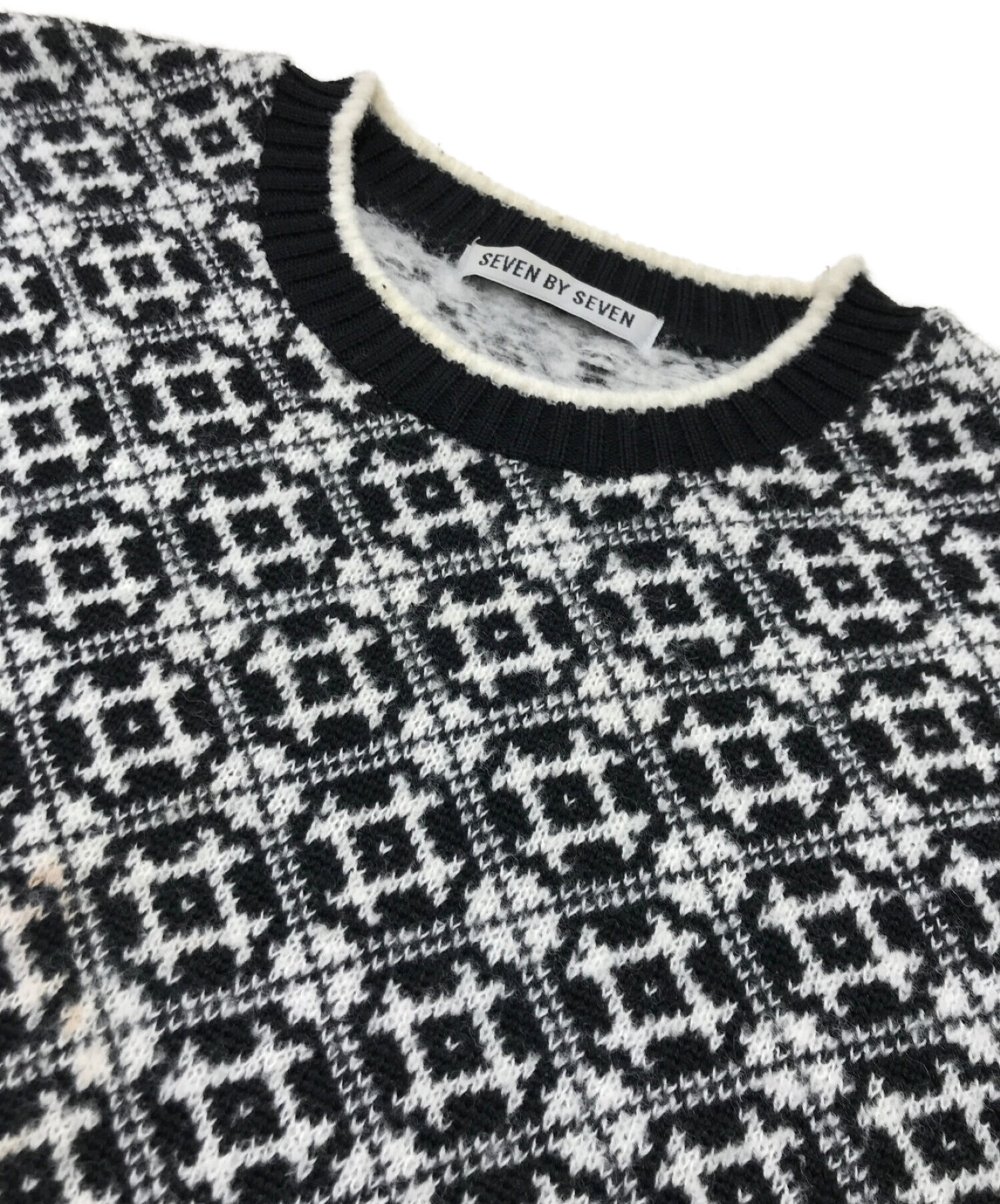 • seven by seven(セブンバイセブン)seven by seven (セブンバイセブン) ノルディックセーター ホワイト×ブラック サイズ:Lの古着・服飾アイテム フロント中央ヨゴレ