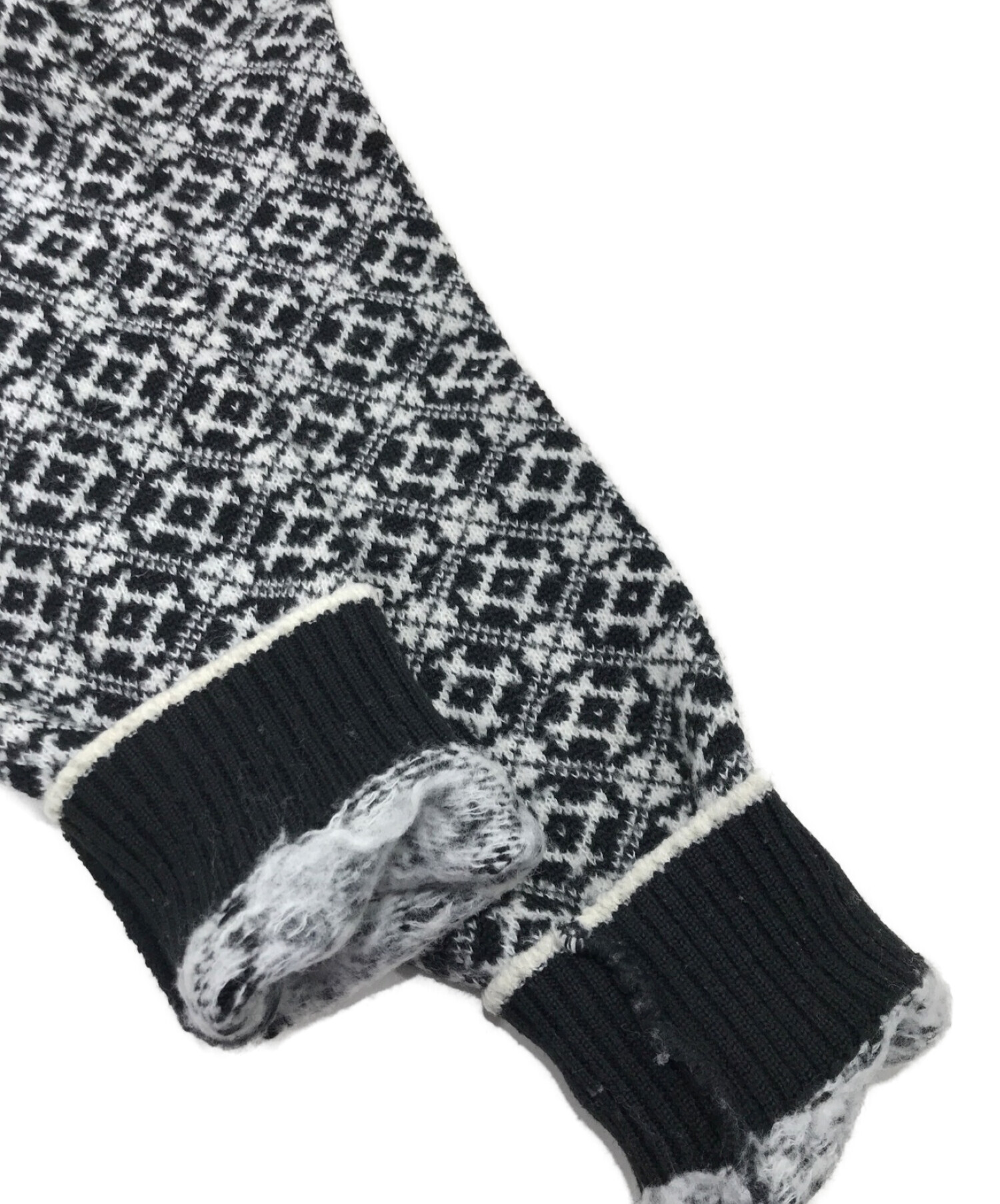 • seven by seven(セブンバイセブン)seven by seven (セブンバイセブン) ノルディックセーター ホワイト×ブラック サイズ:Lの古着・服飾アイテム 内部袖口毛羽立ち