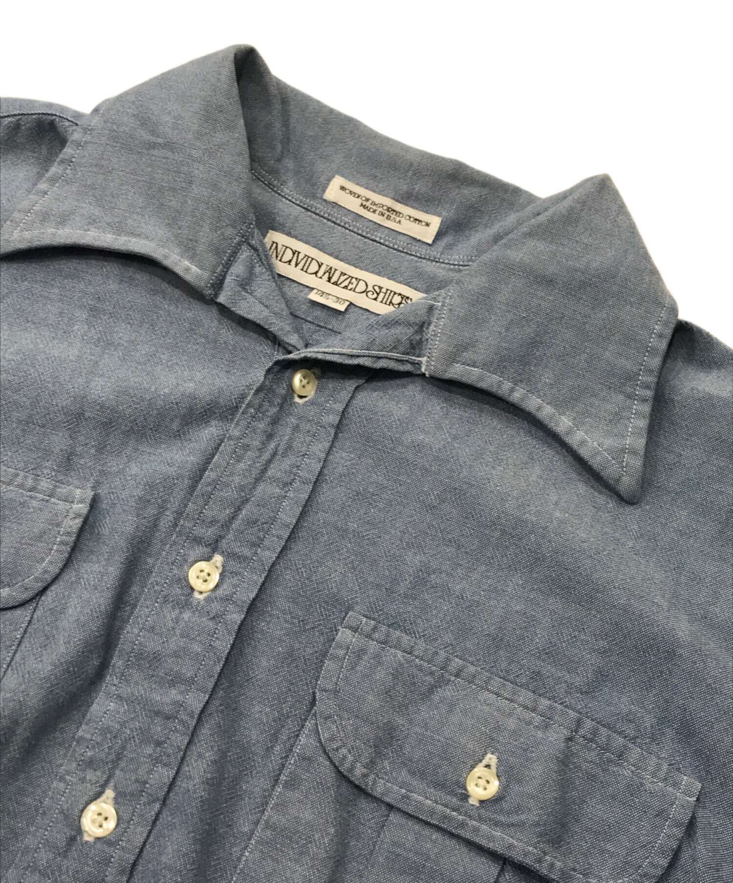 • INDIVIDUALIZED SHIRTS(インディビジュアライズドシャツ)INDIVIDUALIZED SHIRTS (インディビジュアライズドシャツ) グランパシャンブレーシャツ ブルー サイズ:141/2-30の古着・服飾アイテム 襟ヨゴレ有