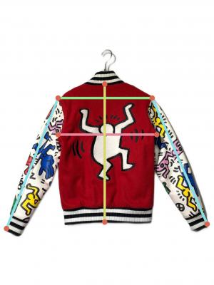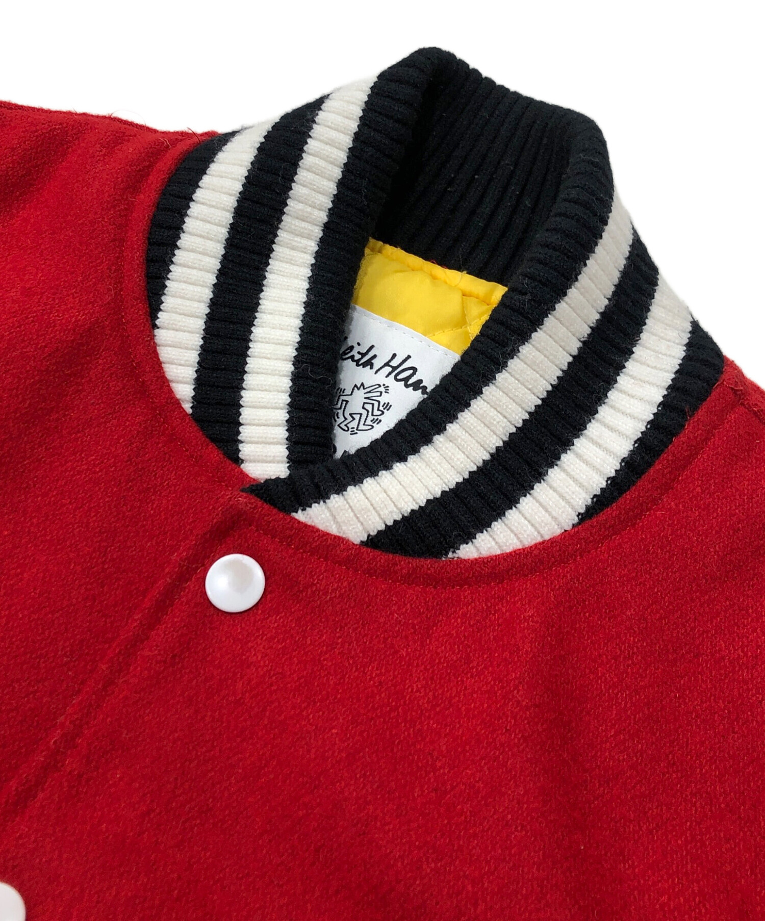 • JOYRICH(ジョイリッチ)JOYRICH (ジョイリッチ) Keith Haring (キースヘリング) スタジャン レッド サイズ:Sの古着・服飾アイテム リブ部分毛羽立ち
