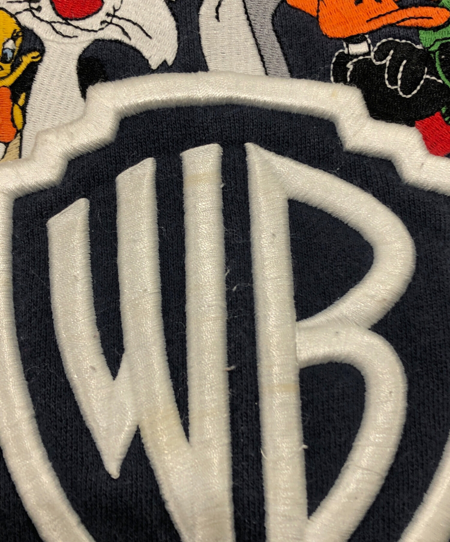 • WARNER BROS STUDIO STORE(ワーナーブラザーズ スタジオストア)WARNER BROS STUDIO STORE (ワーナーブラザーズ スタジオストア) 裏起毛スウェット ネイビー サイズ:Sの古着・服飾アイテム 首元ダメージ有