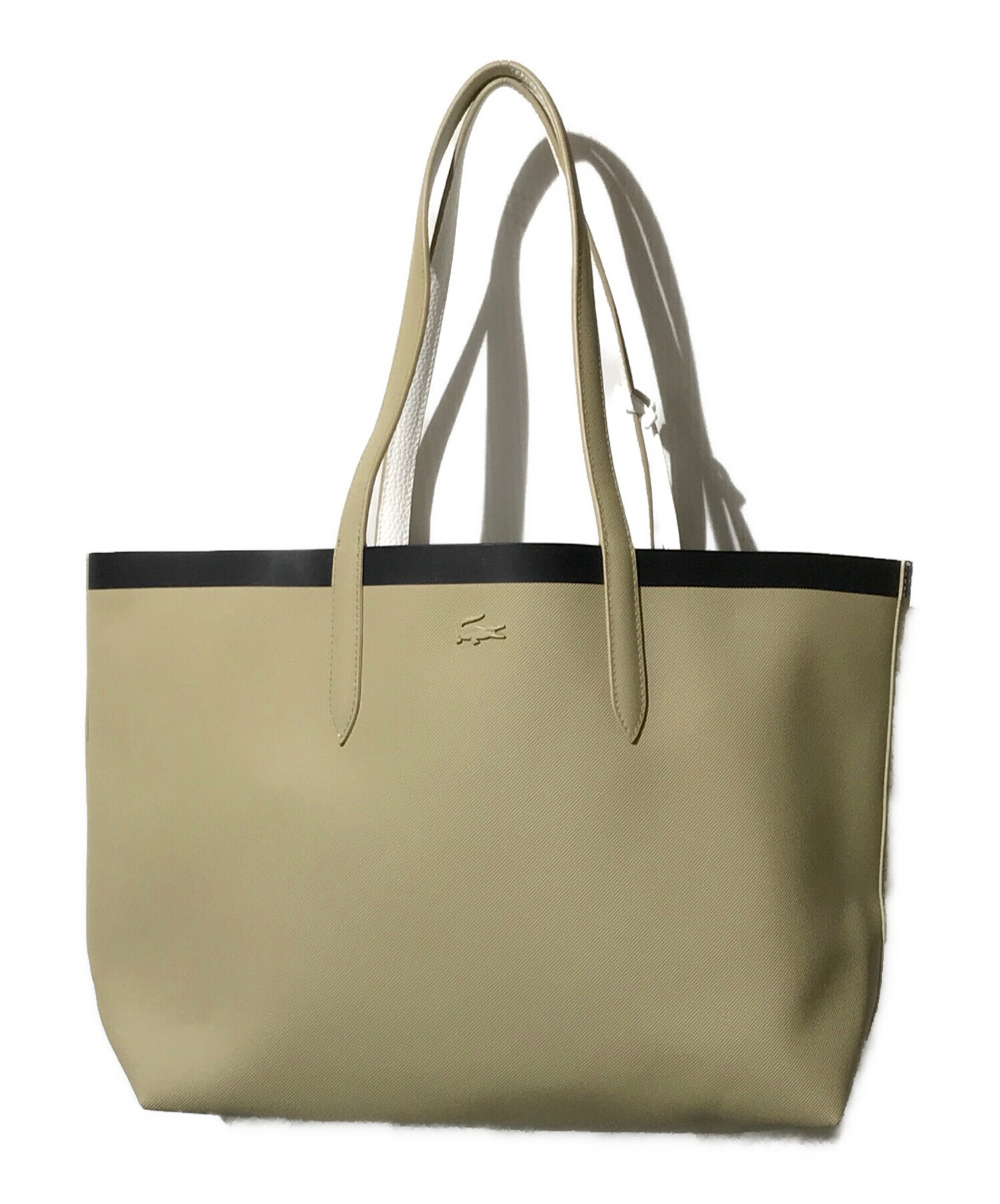 • LACOSTE(ラコステ)LACOSTE (ラコステ) アンナシーズナル リバーシブルトートバッグ ホワイト×カーキの古着・服飾アイテム 内部微ヨゴレ