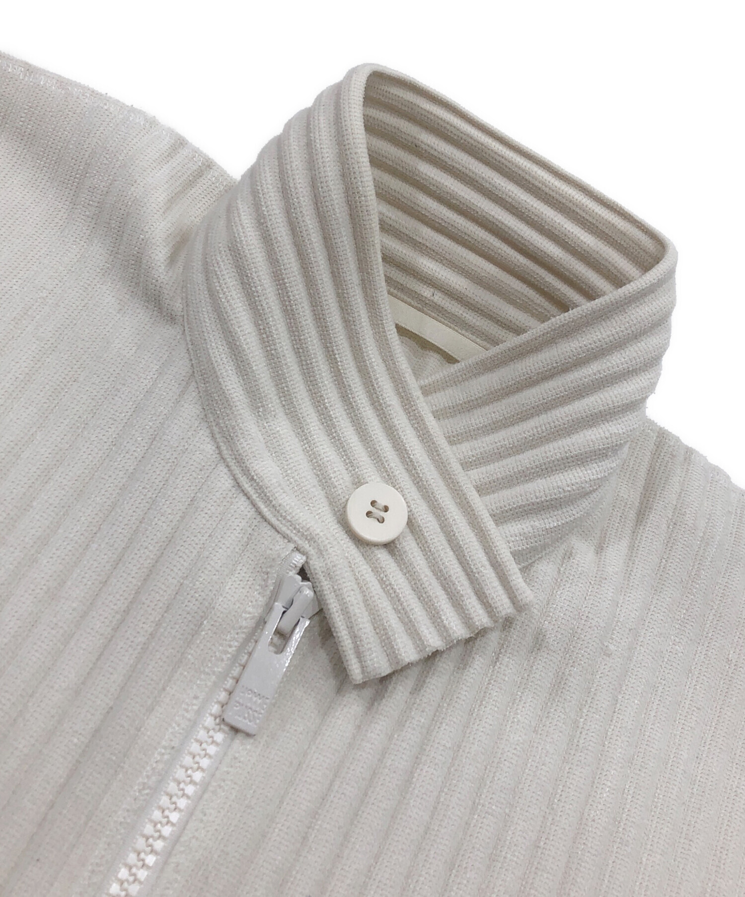 • HOMME PLISSE ISSEY MIYAKE(オム プリッセ イッセイ ミヤケ)HOMME PLISSE ISSEY MIYAKE (オム プリッセ イッセイ ミヤケ) プリーツジャケット アイボリー サイズ:2の古着・服飾アイテム 襟全体毛羽立ち有