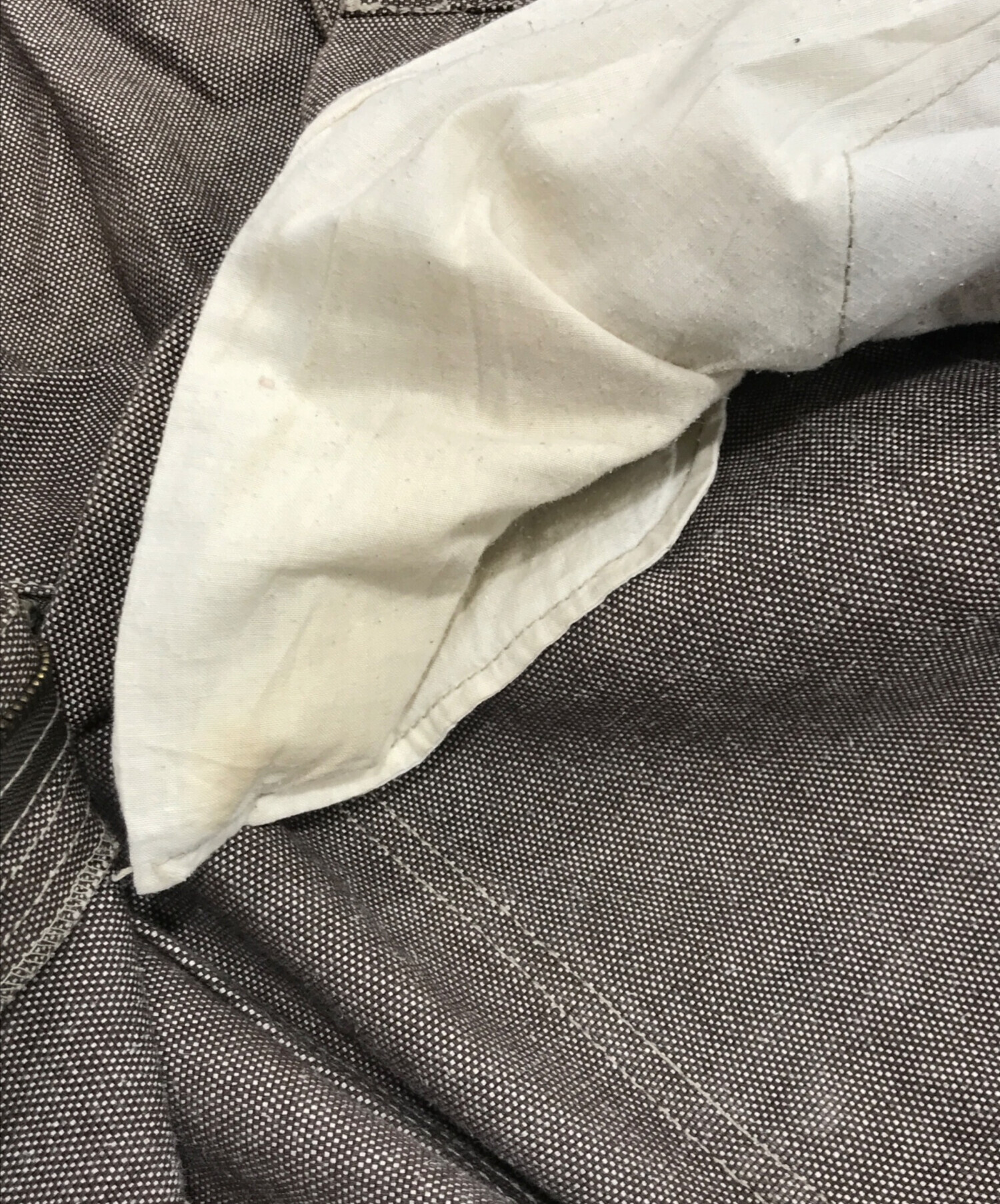 目立つシミや汚れ、におい等がある場合は商品画像や説明文にて極力表記させていただいておりますが、中古品という商品の特性上、全ての瑕疵や不備、洋服直し箇所を撮影・記載をすることは難しくなっております。また、ほとんどのアイテムは店頭と併売しておりますため、出品掲載時からコンディションが変動している場合もございます。あらかじめご了承くださいませ。