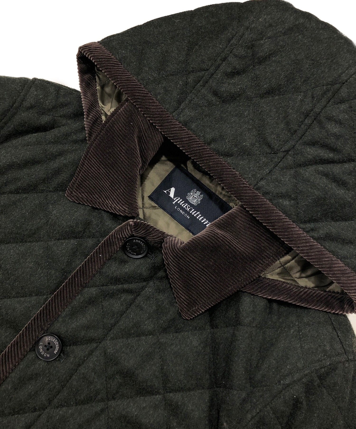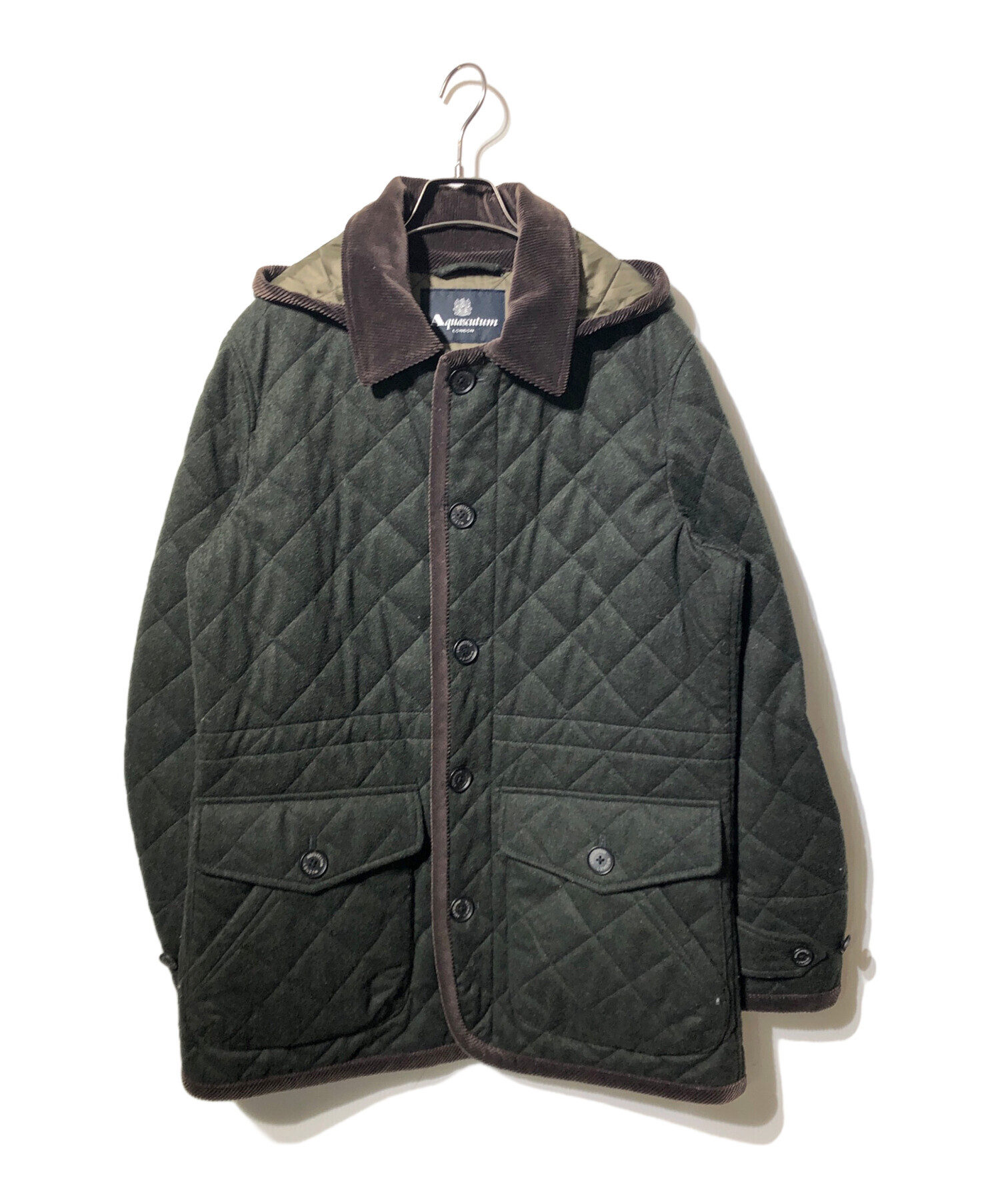 • Aquascutum(アクアスキュータム)Aquascutum (アクアスキュータム) フーデッドキルティングジャケット カーキ サイズ:38の古着・服飾アイテム 全体毛羽立ち微有