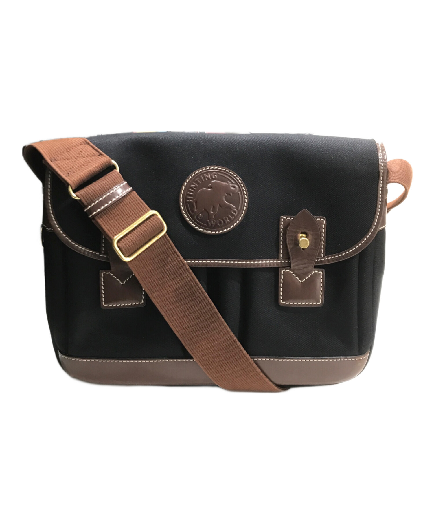 • HUNTING WORLD(ハンティングワールド)HUNTING WORLD (ハンティングワールド) バチューオリジン キャンバスメッセンジャーバッグ ブラックの古着・服飾アイテム