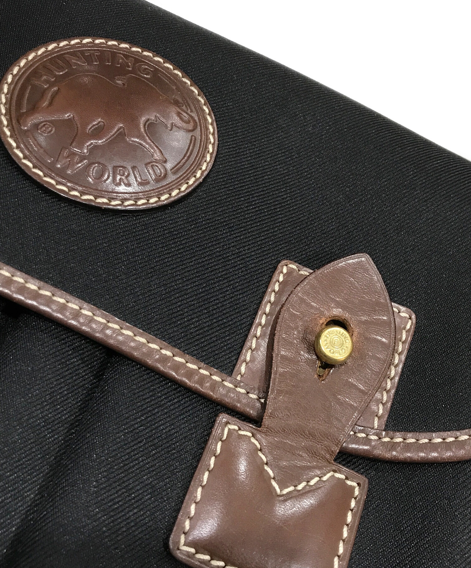 • HUNTING WORLD(ハンティングワールド)HUNTING WORLD (ハンティングワールド) バチューオリジン キャンバスメッセンジャーバッグ ブラックの古着・服飾アイテム レザー部分キズ・スレ有