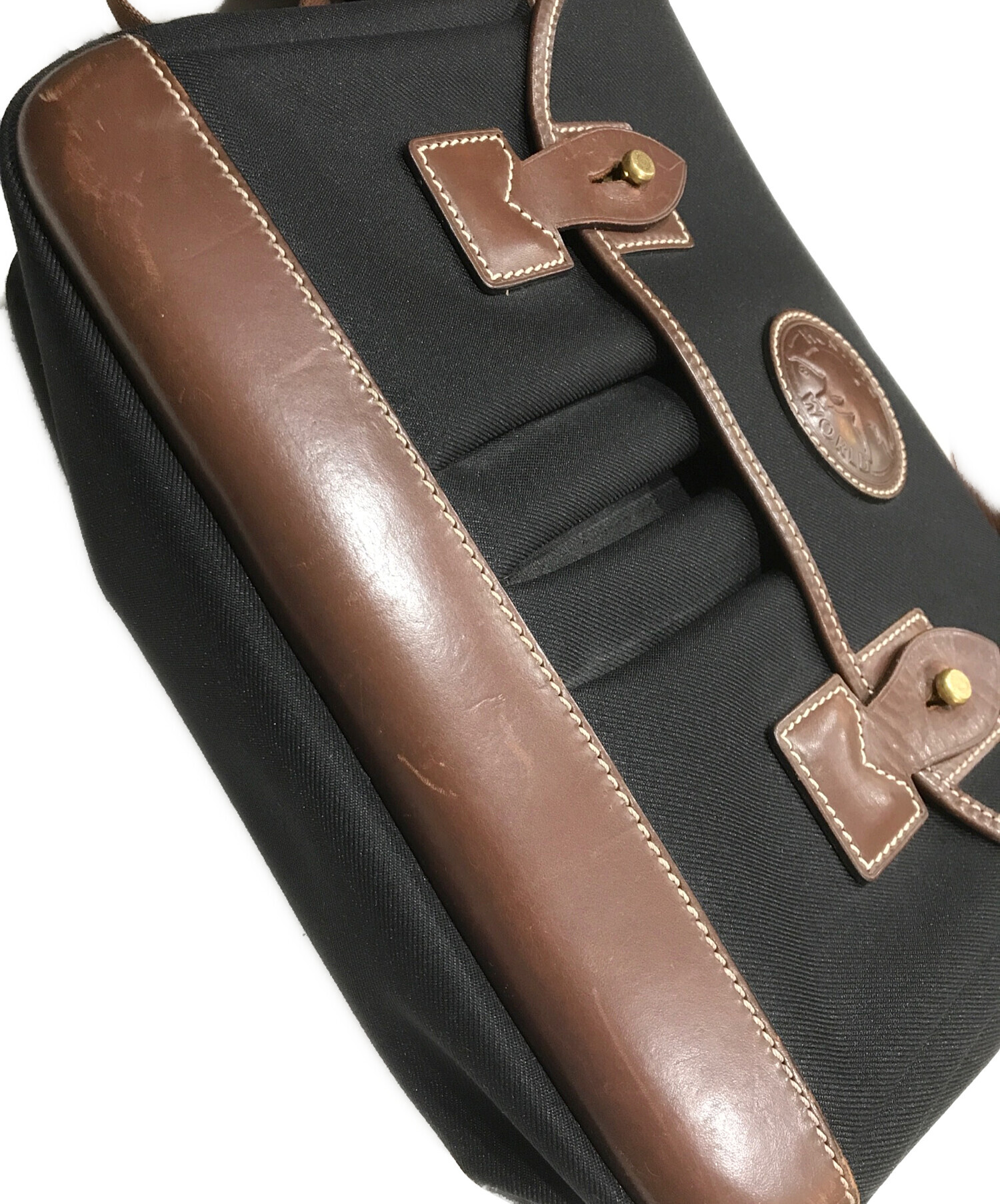 • HUNTING WORLD(ハンティングワールド)HUNTING WORLD (ハンティングワールド) バチューオリジン キャンバスメッセンジャーバッグ ブラックの古着・服飾アイテム 内部全体ヨゴレ有
