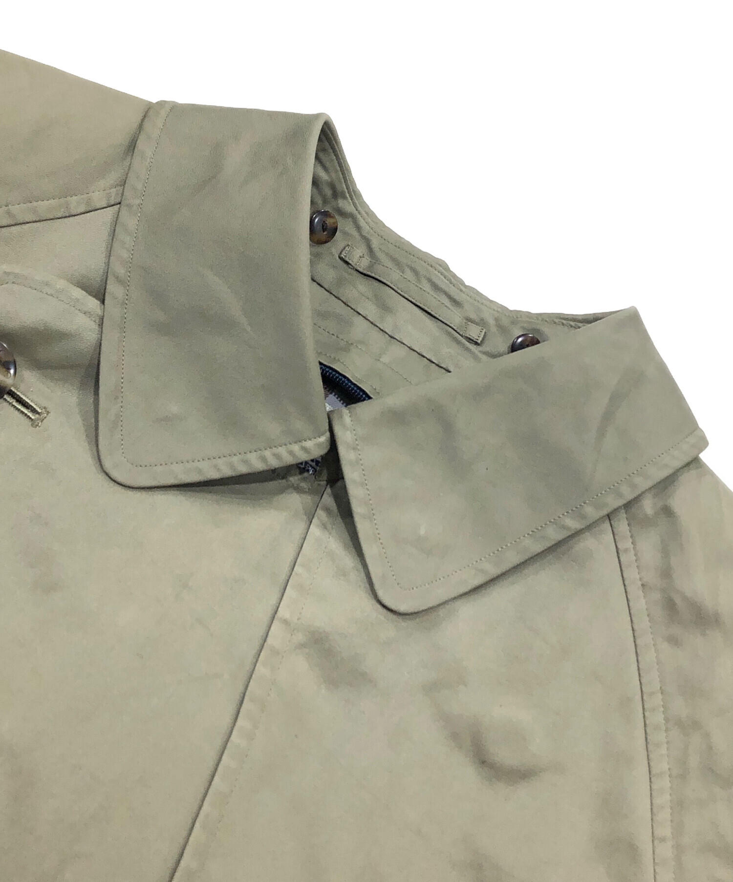 目立つシミや汚れ、におい等がある場合は商品画像や説明文にて極力表記させていただいておりますが、中古品という商品の特性上、全ての瑕疵や不備、洋服直し箇所を撮影・記載をすることは難しくなっております。また、ほとんどのアイテムは店頭と併売しておりますため、出品掲載時からコンディションが変動している場合もございます。あらかじめご了承くださいませ。