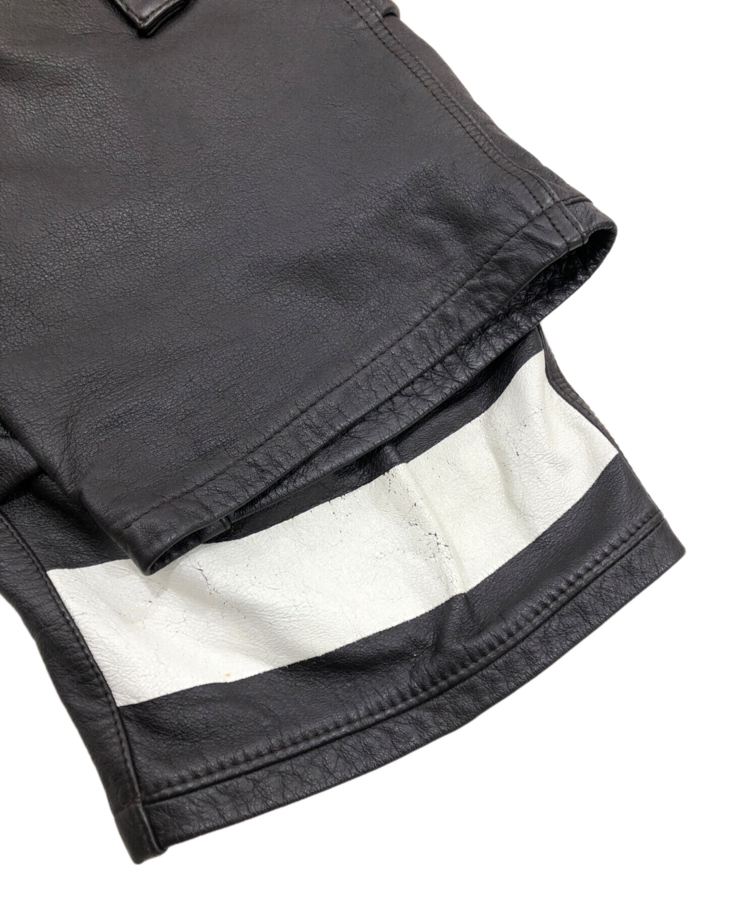 • UNDERCOVERISM(アンダーカバーイズム)UNDERCOVERISM (アンダーカバー) アーカイブレザークロップドパンツ ブラウン サイズ:表記なしの古着・服飾アイテム 各所キズ有